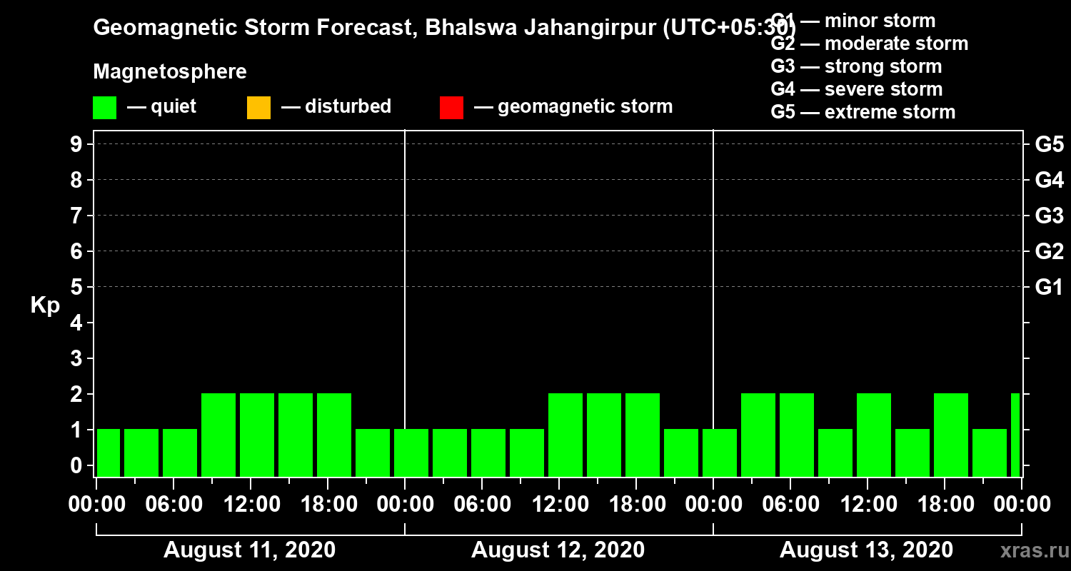 Geomagnetic activity forecast in Bhalswa Jahangirpur — Aug 11, 2020