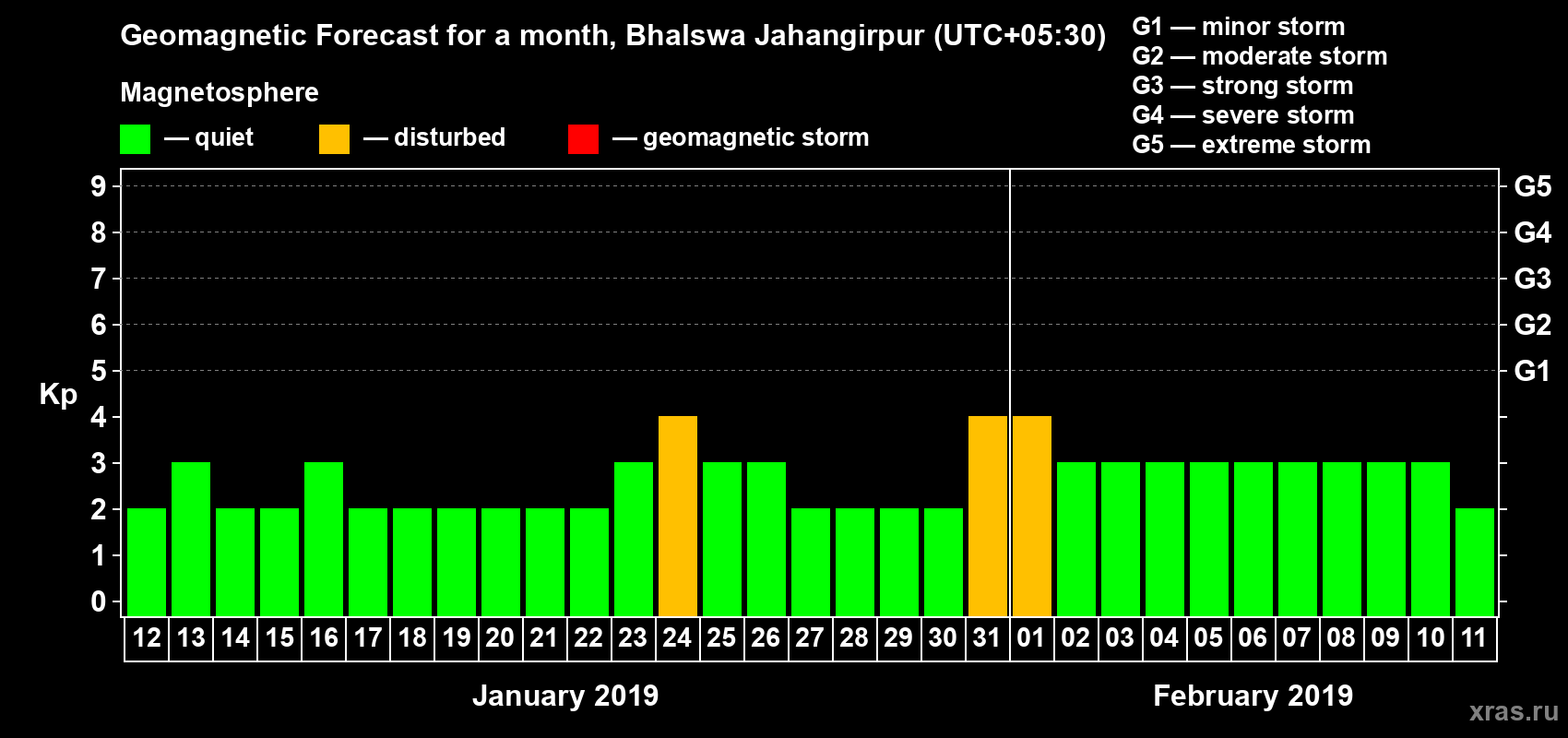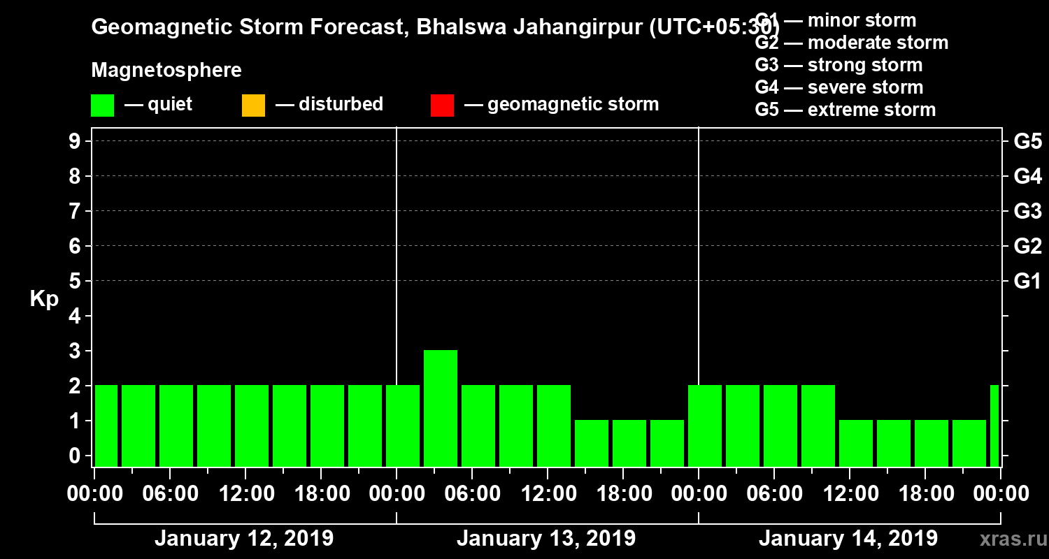 Geomagnetic storm forecast in Bhalswa Jahangirpur for Jan 12, 2019
