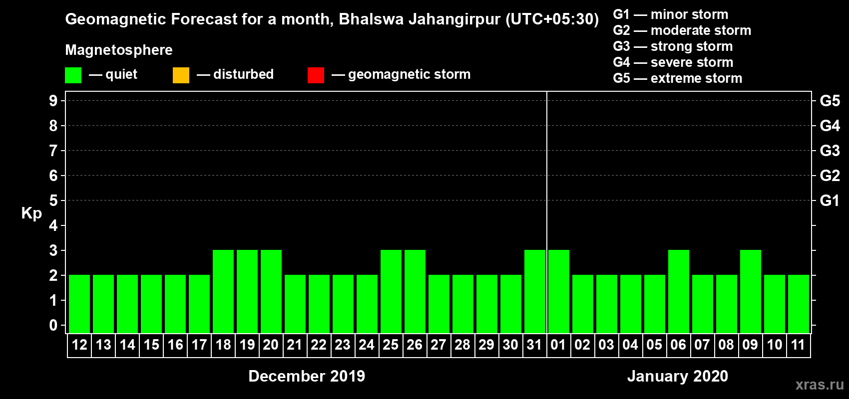 Geomagnetic storm forecast in Bhalswa Jahangirpur for Dec 12, 2019
