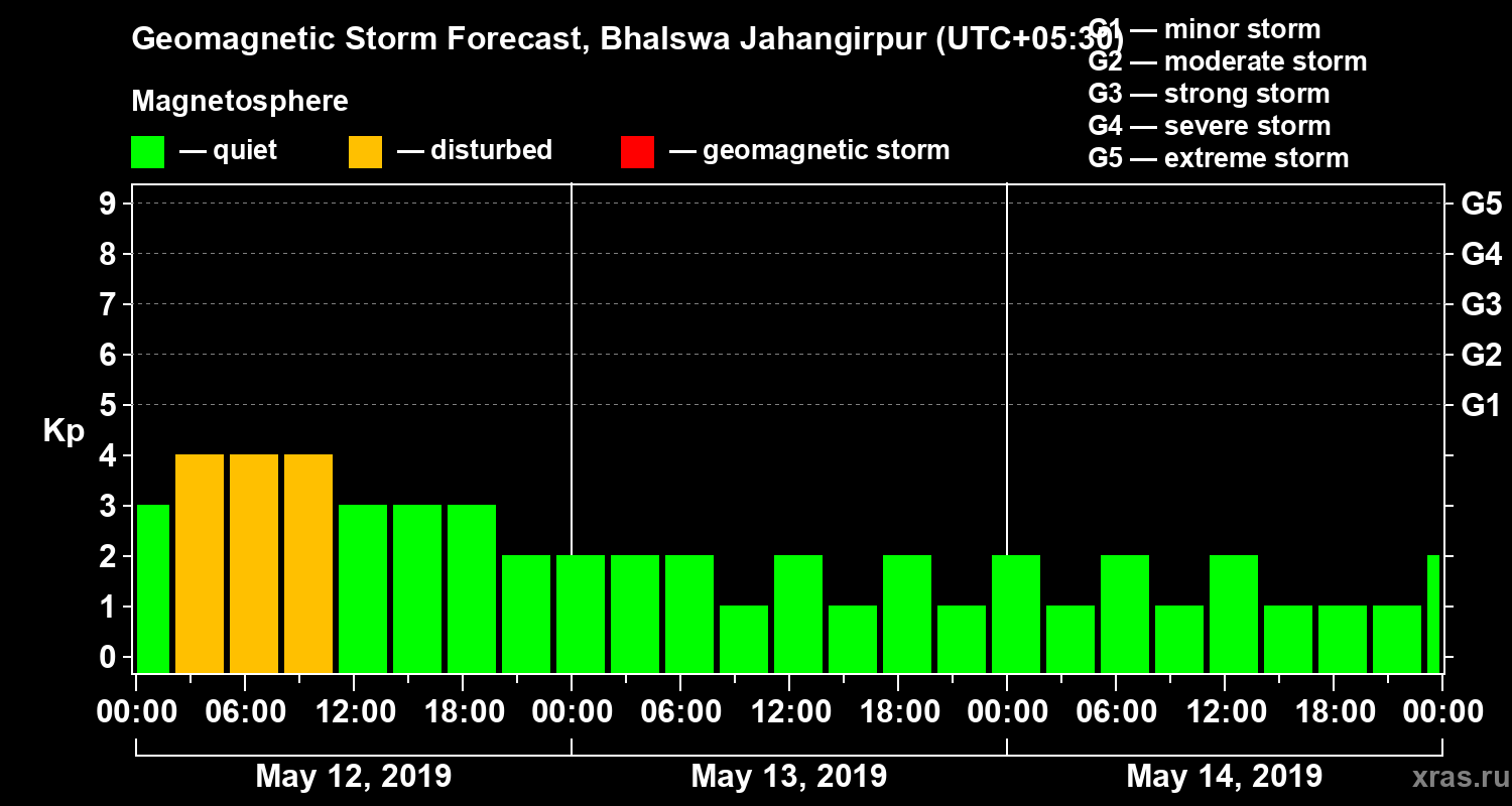 Geomagnetic activity forecast in Bhalswa Jahangirpur — May 12, 2019
