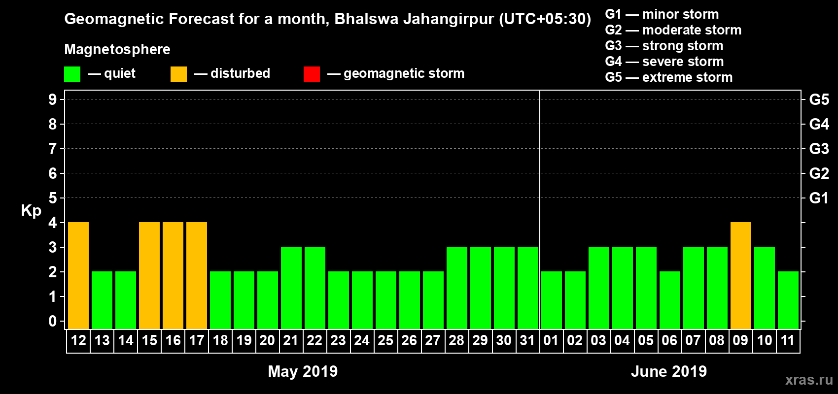 Geomagnetic storm forecast in Bhalswa Jahangirpur for May 12, 2019