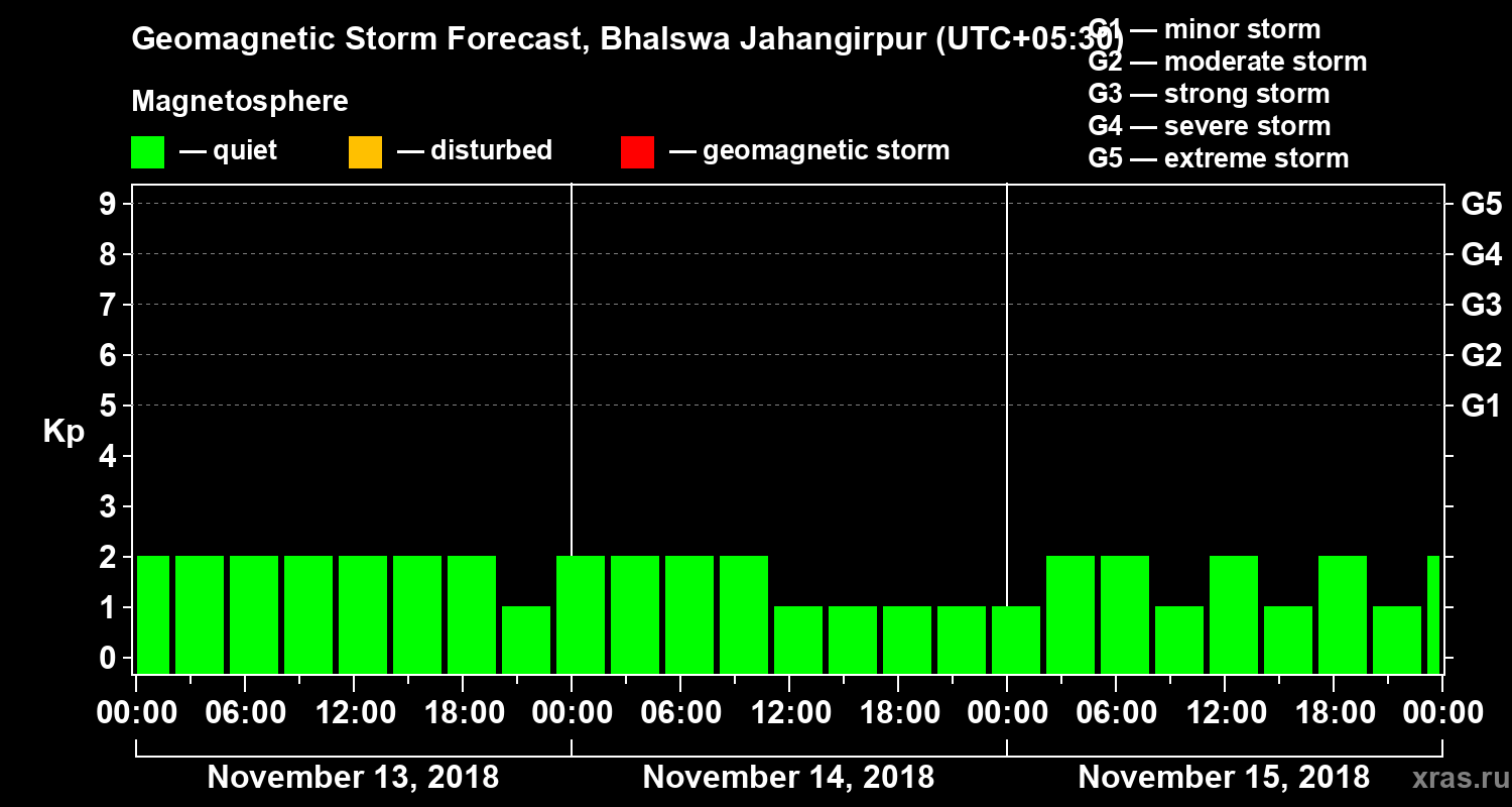 Geomagnetic storm forecast in Bhalswa Jahangirpur for Nov 13, 2018