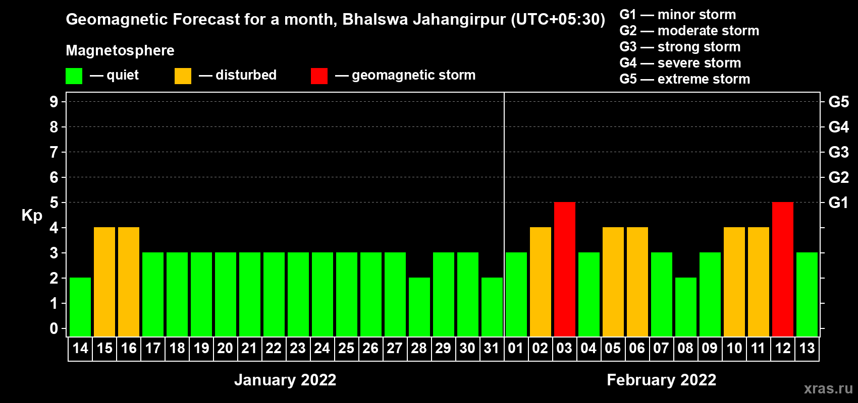 Geomagnetic storm forecast in Bhalswa Jahangirpur for Jan 14, 2022