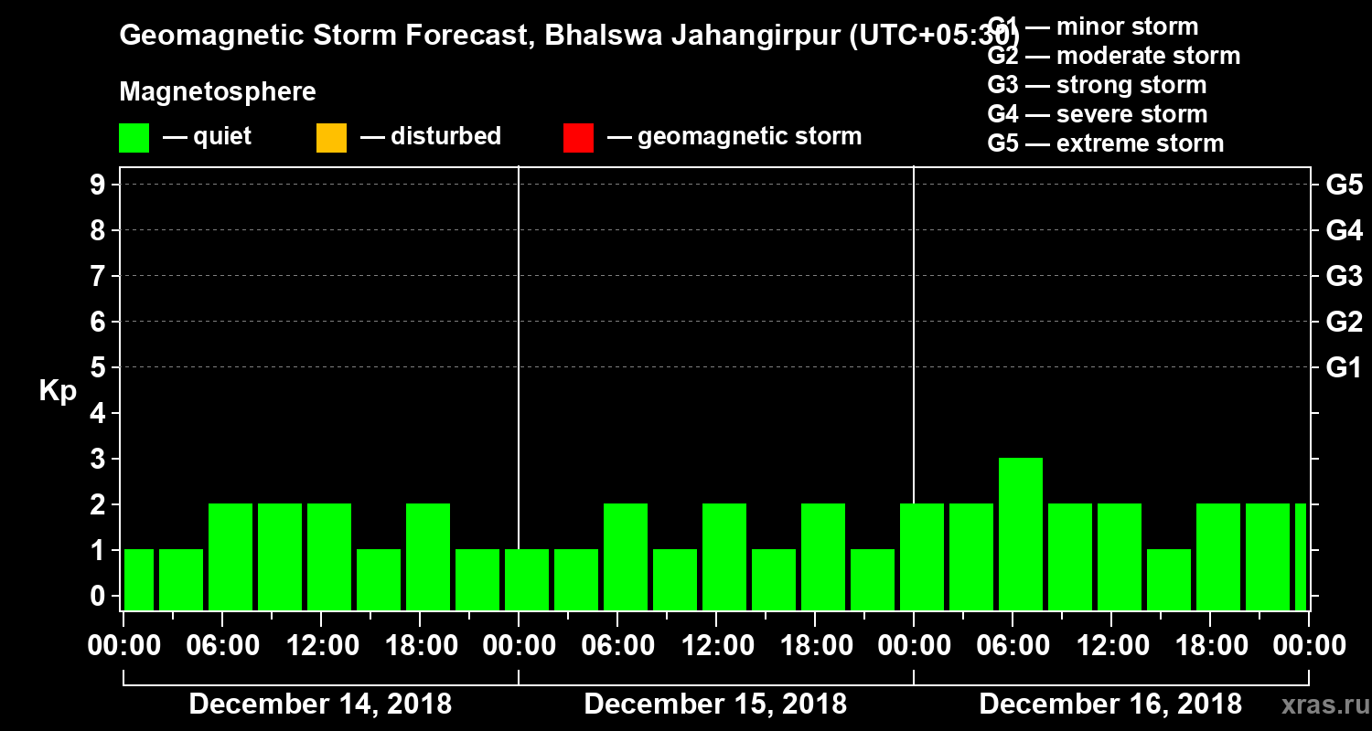 Geomagnetic storm forecast in Bhalswa Jahangirpur for Dec 14, 2018