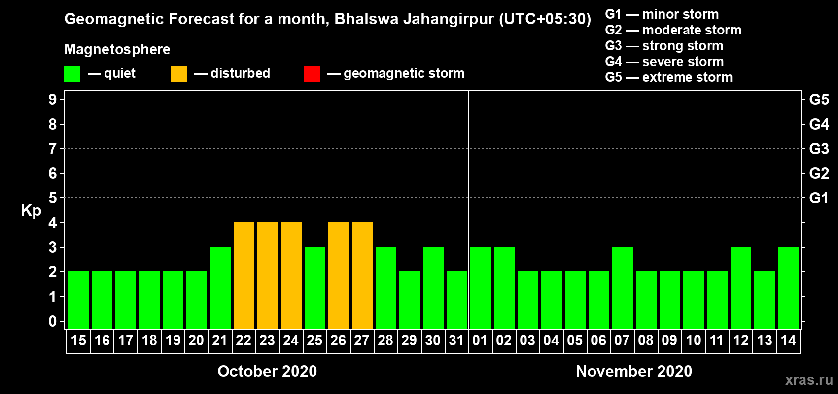 Geomagnetic activity forecast in Bhalswa Jahangirpur — Oct 15, 2020
