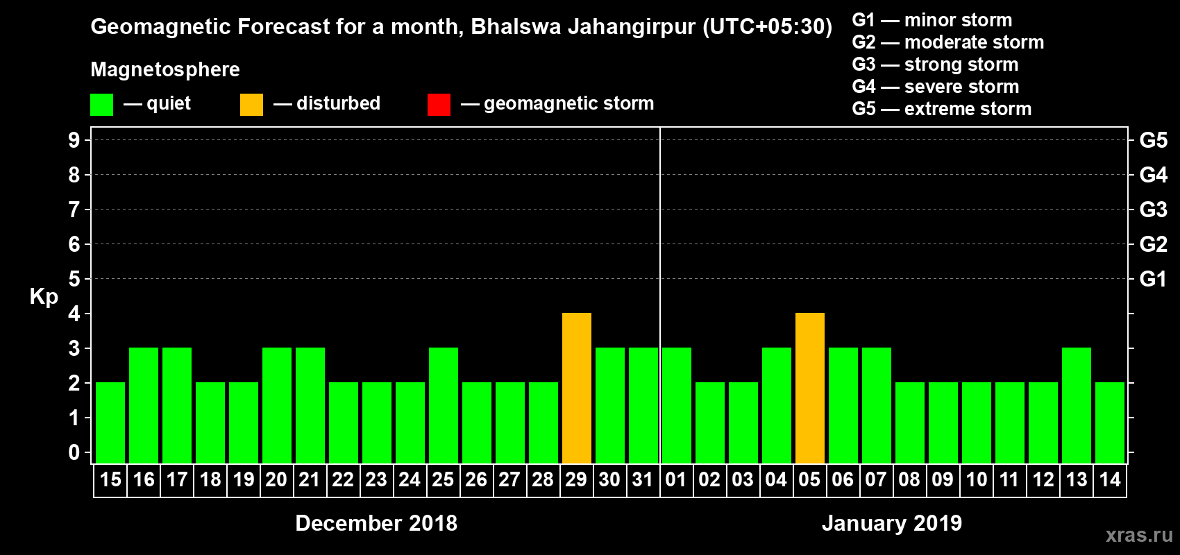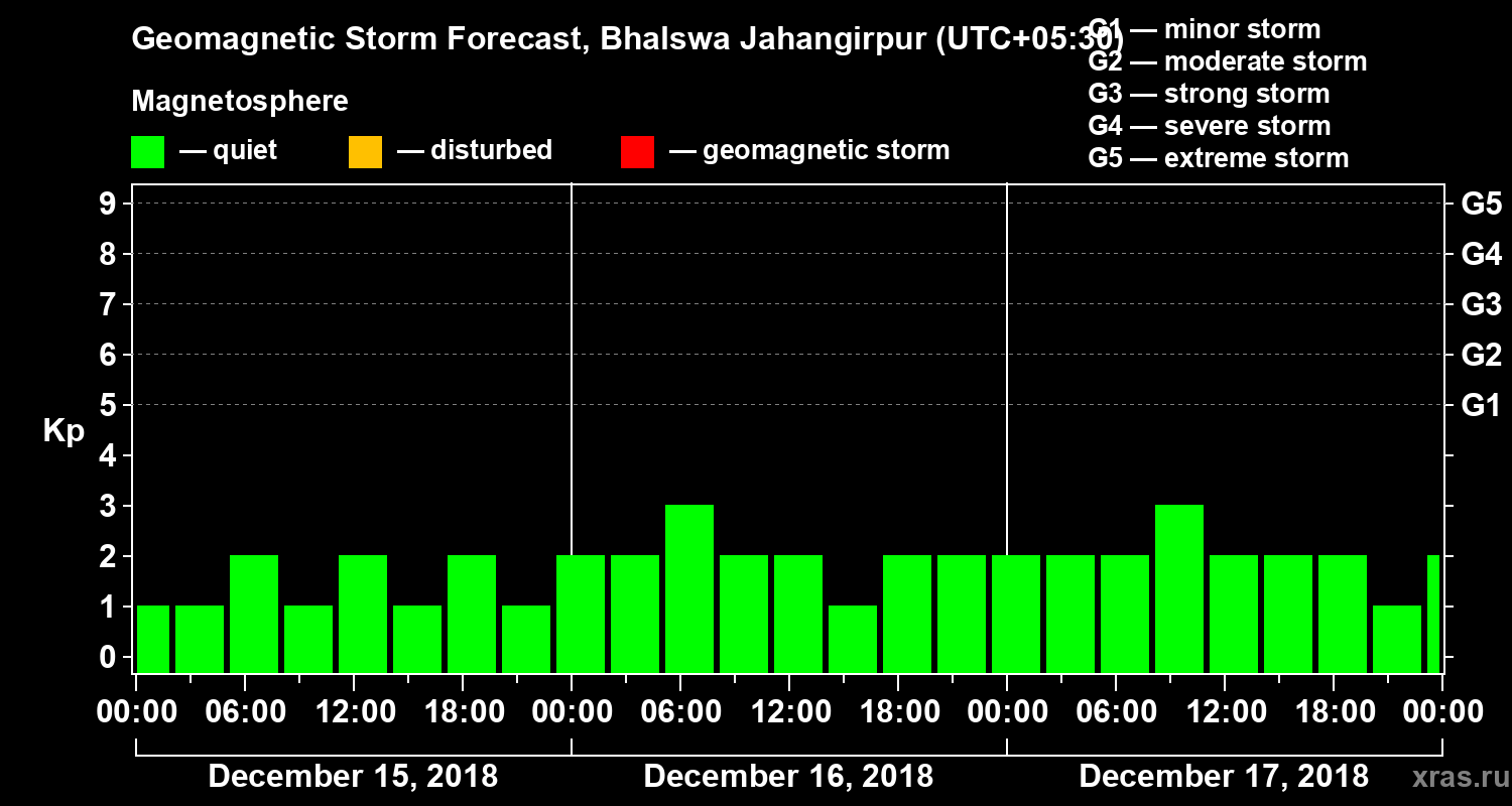 Geomagnetic storm forecast in Bhalswa Jahangirpur for Dec 15, 2018