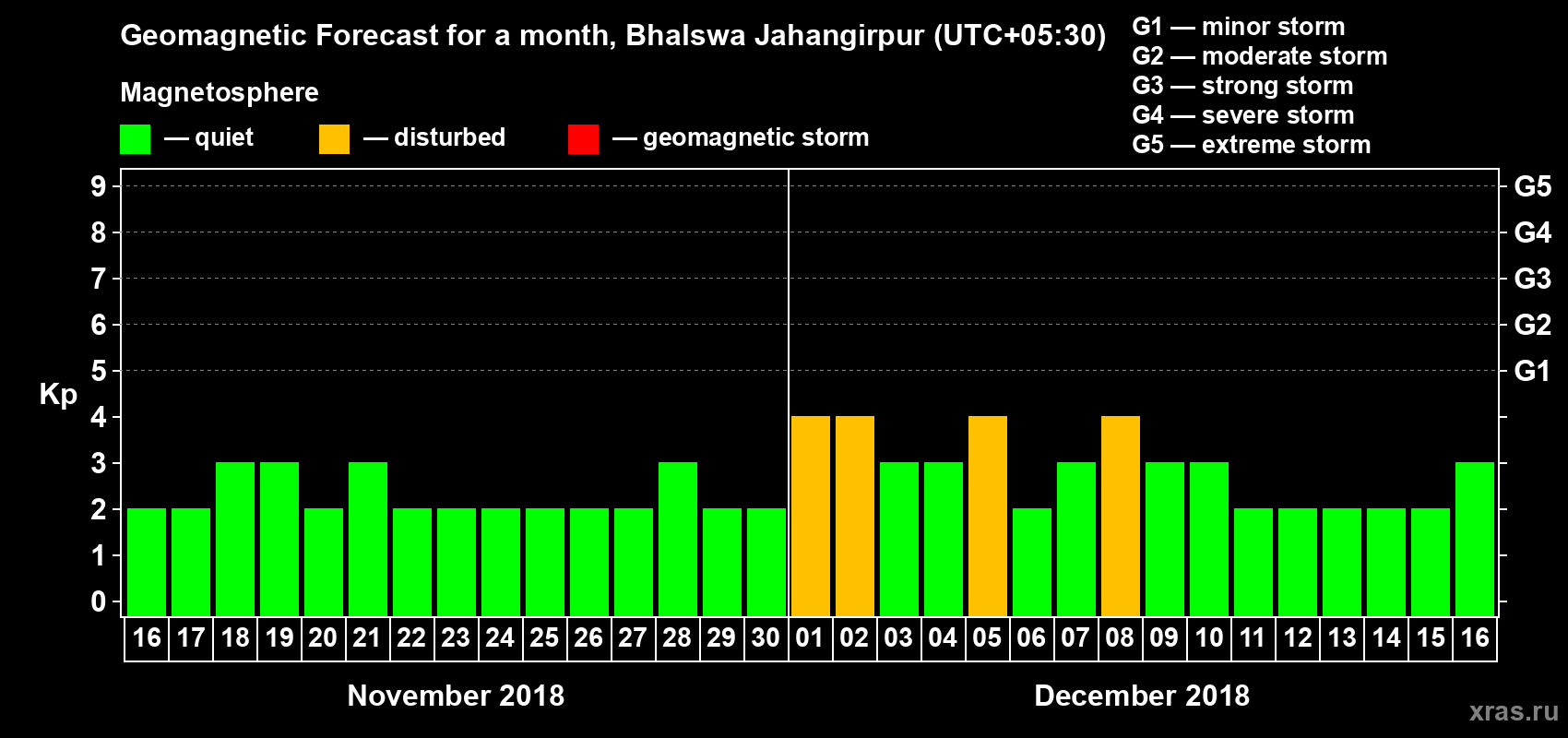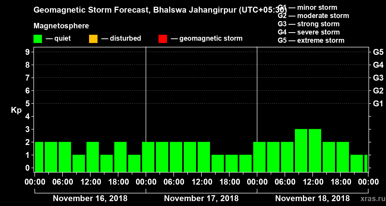 Geomagnetic storm forecast in Bhalswa Jahangirpur for Nov 16, 2018