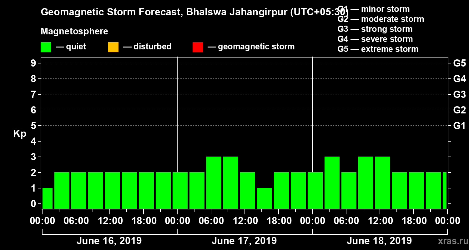 Geomagnetic storm forecast in Bhalswa Jahangirpur for Jun 16, 2019