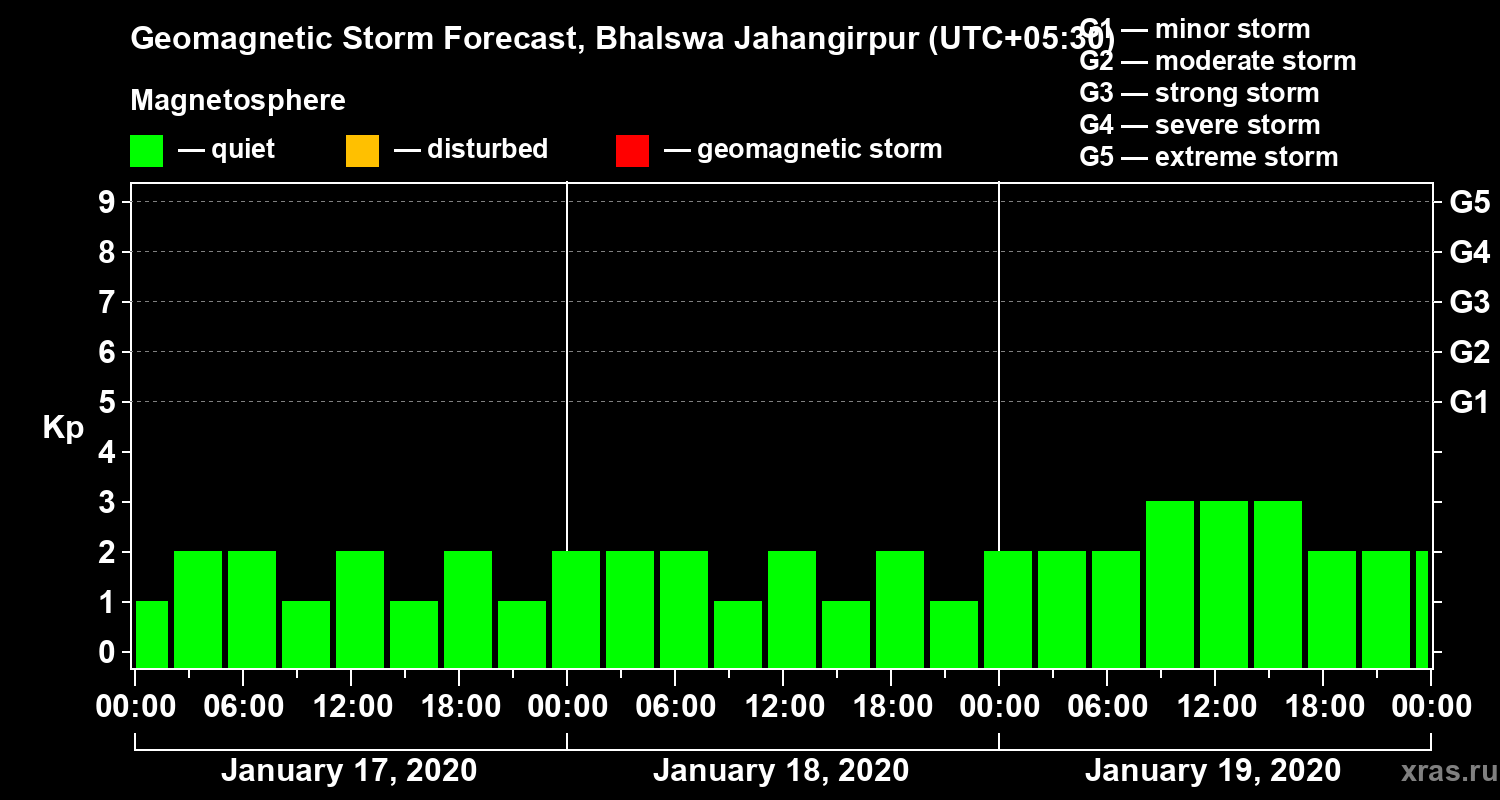 Geomagnetic storm forecast in Bhalswa Jahangirpur for Jan 17, 2020