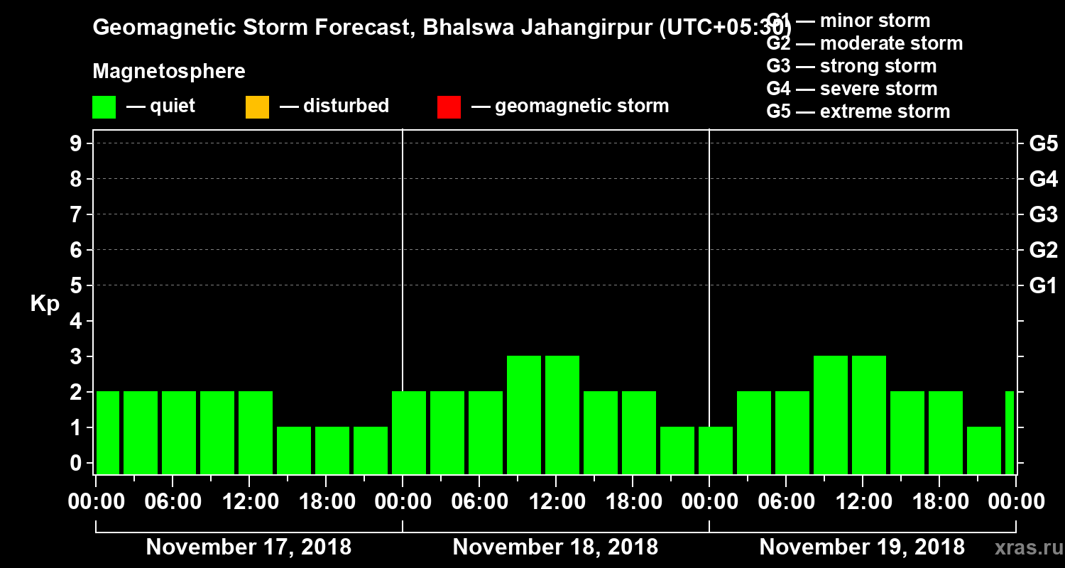 Geomagnetic storm forecast in Bhalswa Jahangirpur for Nov 17, 2018