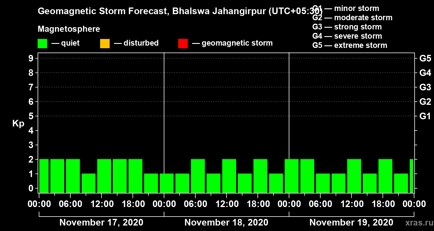 Geomagnetic activity forecast in Bhalswa Jahangirpur — Nov 17, 2020