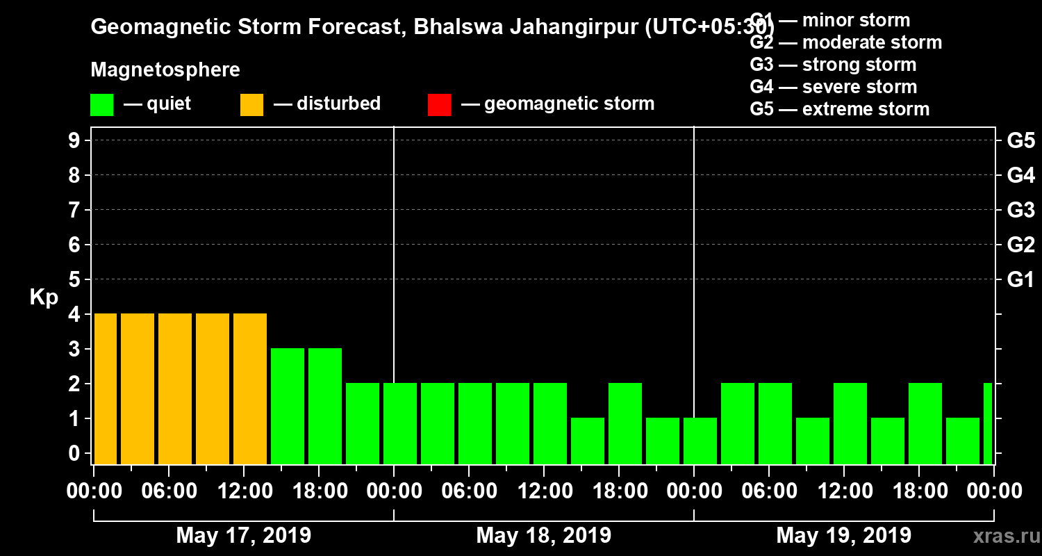 Geomagnetic storm forecast in Bhalswa Jahangirpur for May 17, 2019