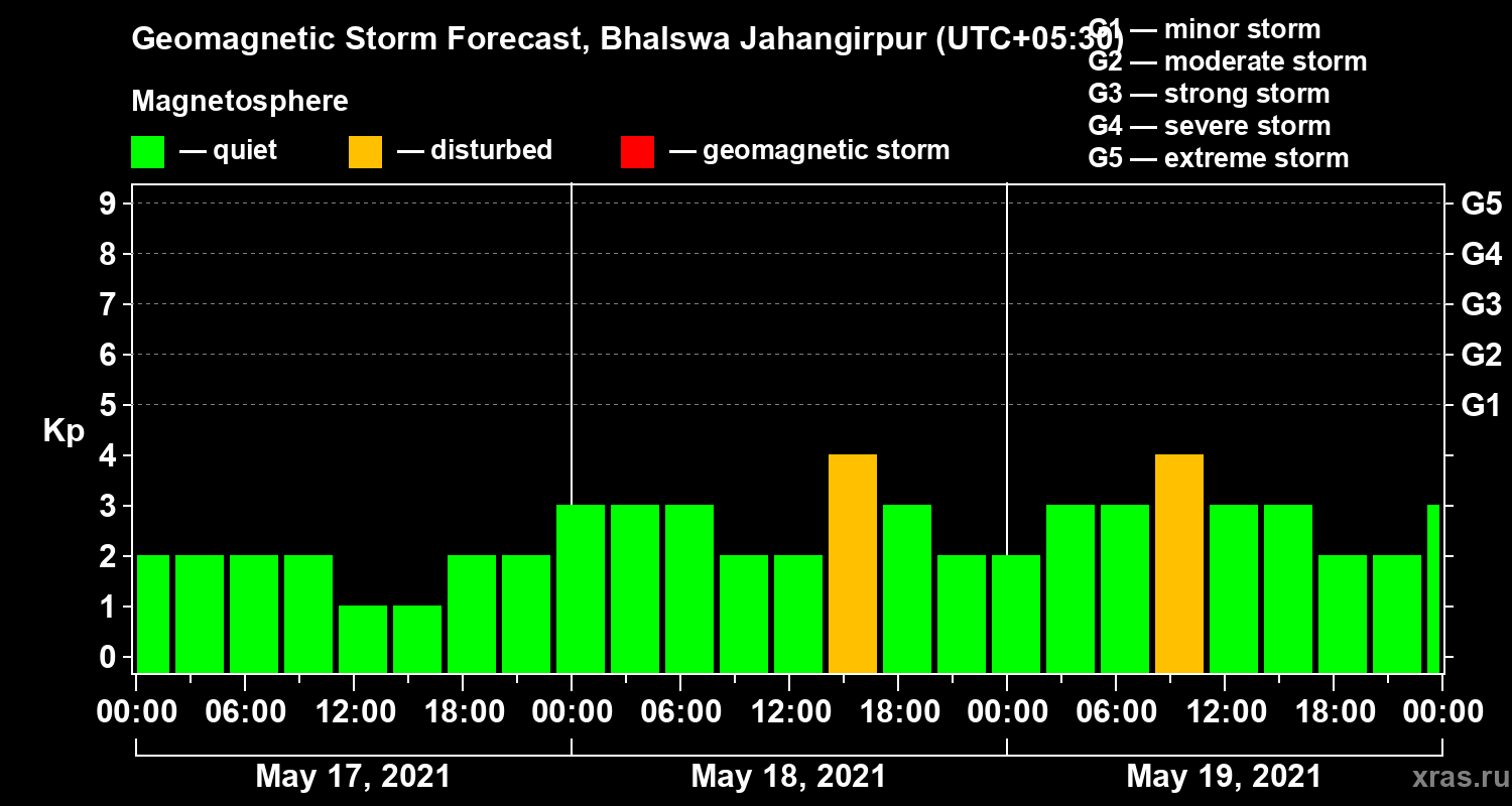 Geomagnetic storm forecast in Bhalswa Jahangirpur for May 17, 2021