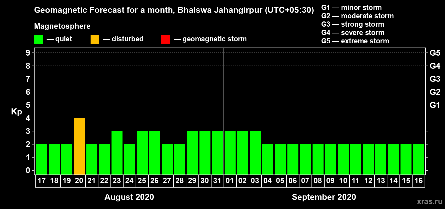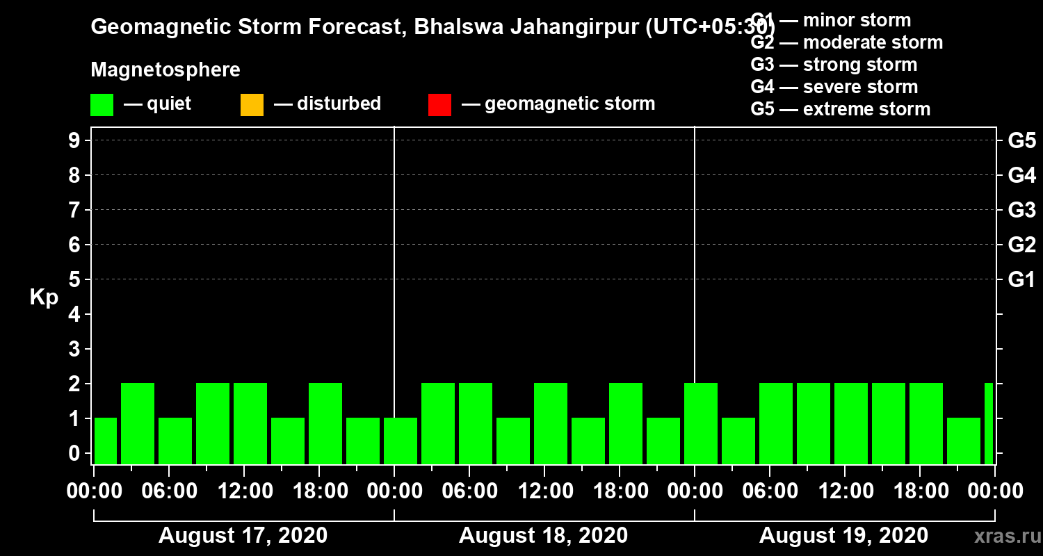 Geomagnetic activity forecast in Bhalswa Jahangirpur — Aug 17, 2020