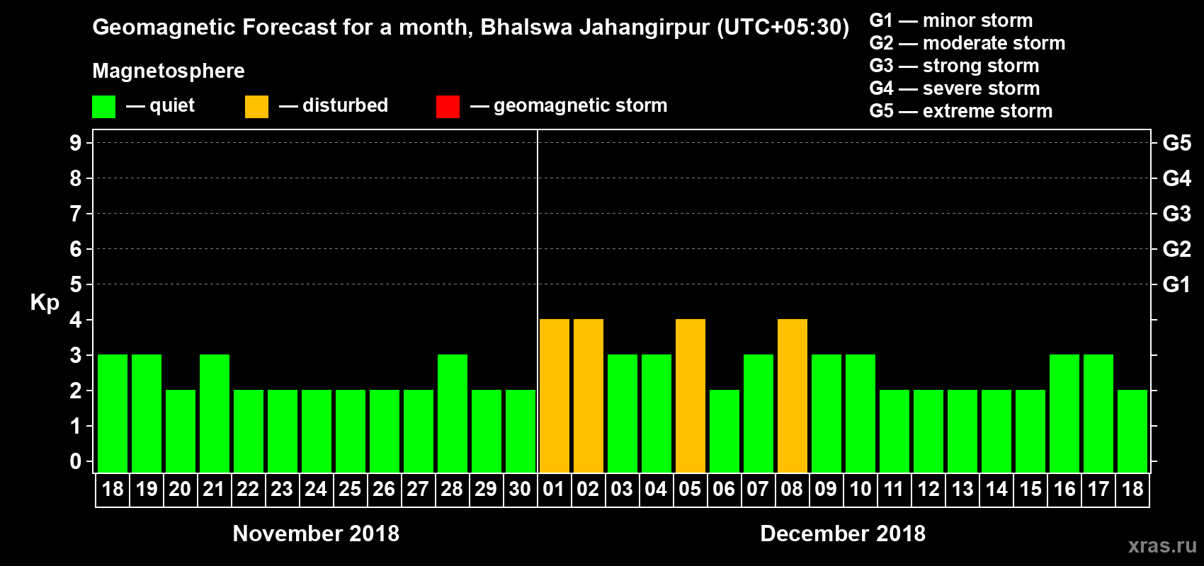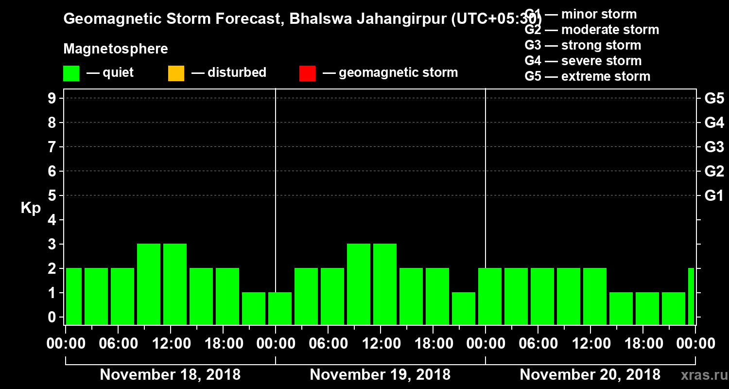 Geomagnetic storm forecast in Bhalswa Jahangirpur for Nov 18, 2018
