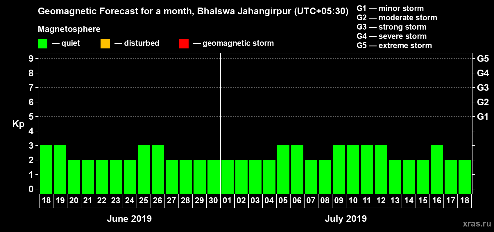 Geomagnetic storm forecast in Bhalswa Jahangirpur for Jun 18, 2019