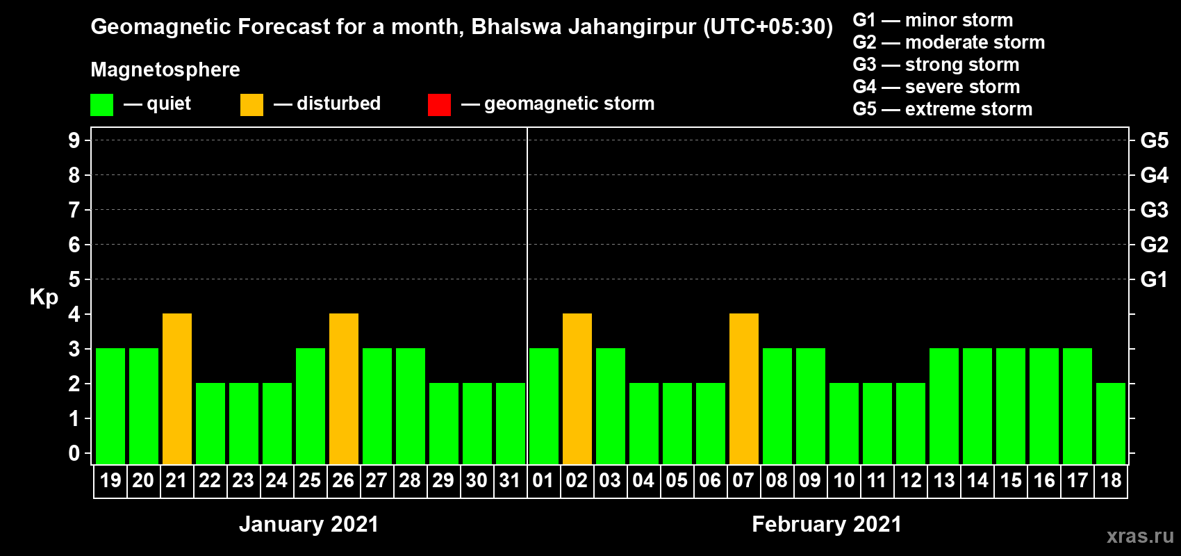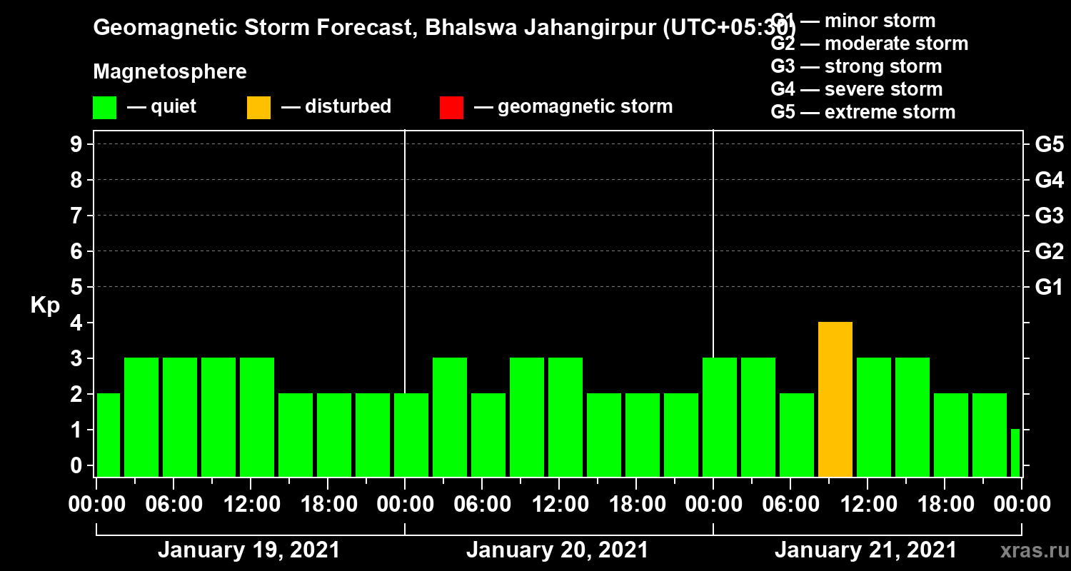Geomagnetic storm forecast in Bhalswa Jahangirpur for Jan 19, 2021