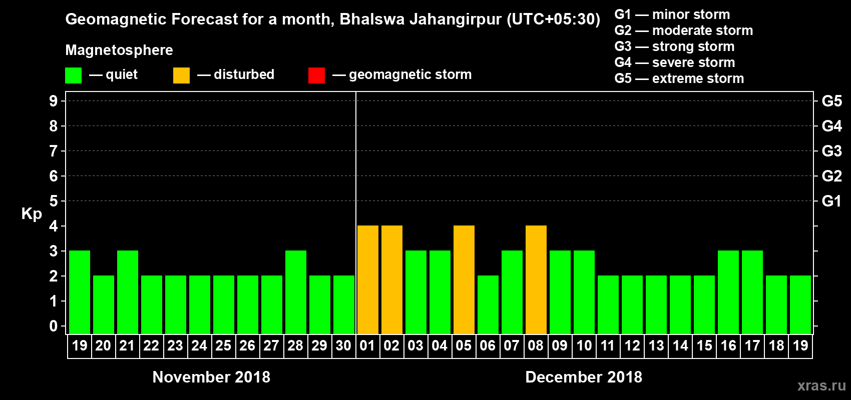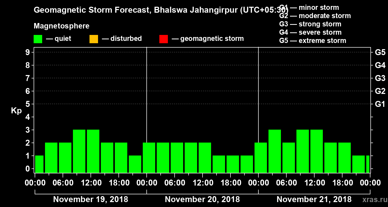 Geomagnetic storm forecast in Bhalswa Jahangirpur for Nov 19, 2018