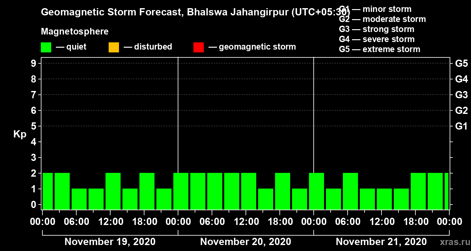 Geomagnetic storm forecast in Bhalswa Jahangirpur for Nov 19, 2020