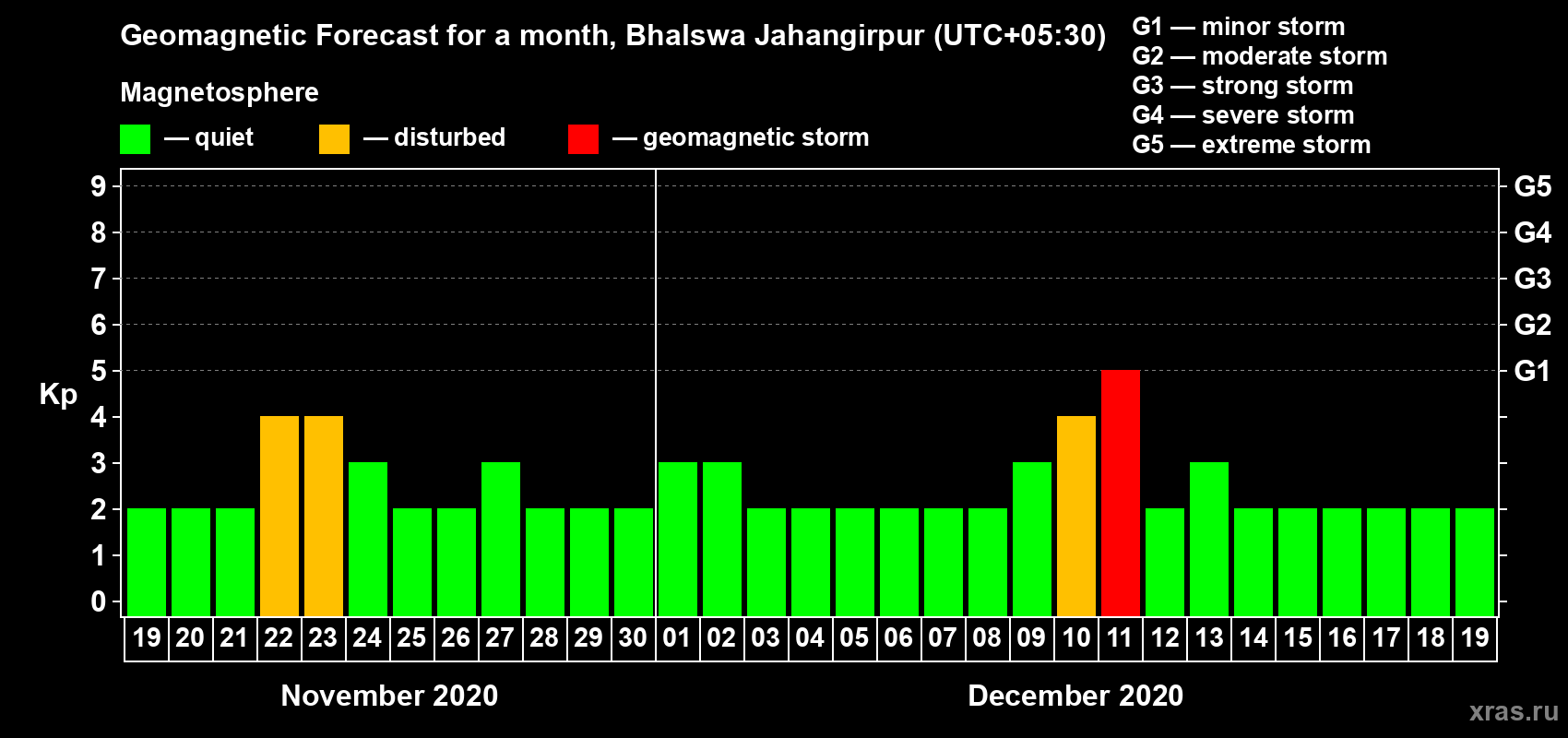 Geomagnetic activity forecast in Bhalswa Jahangirpur — Nov 19, 2020