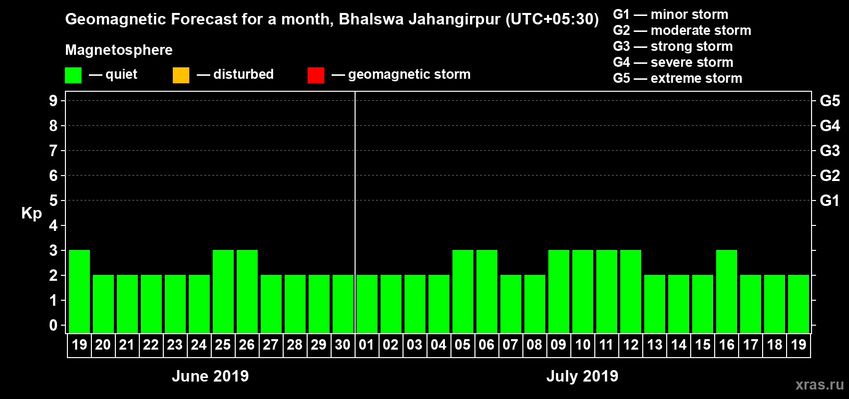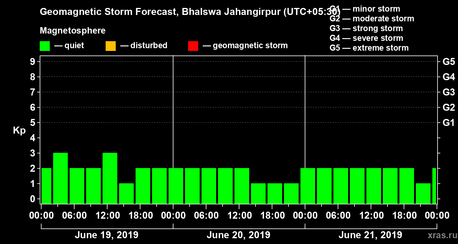 Geomagnetic storm forecast in Bhalswa Jahangirpur for Jun 19, 2019