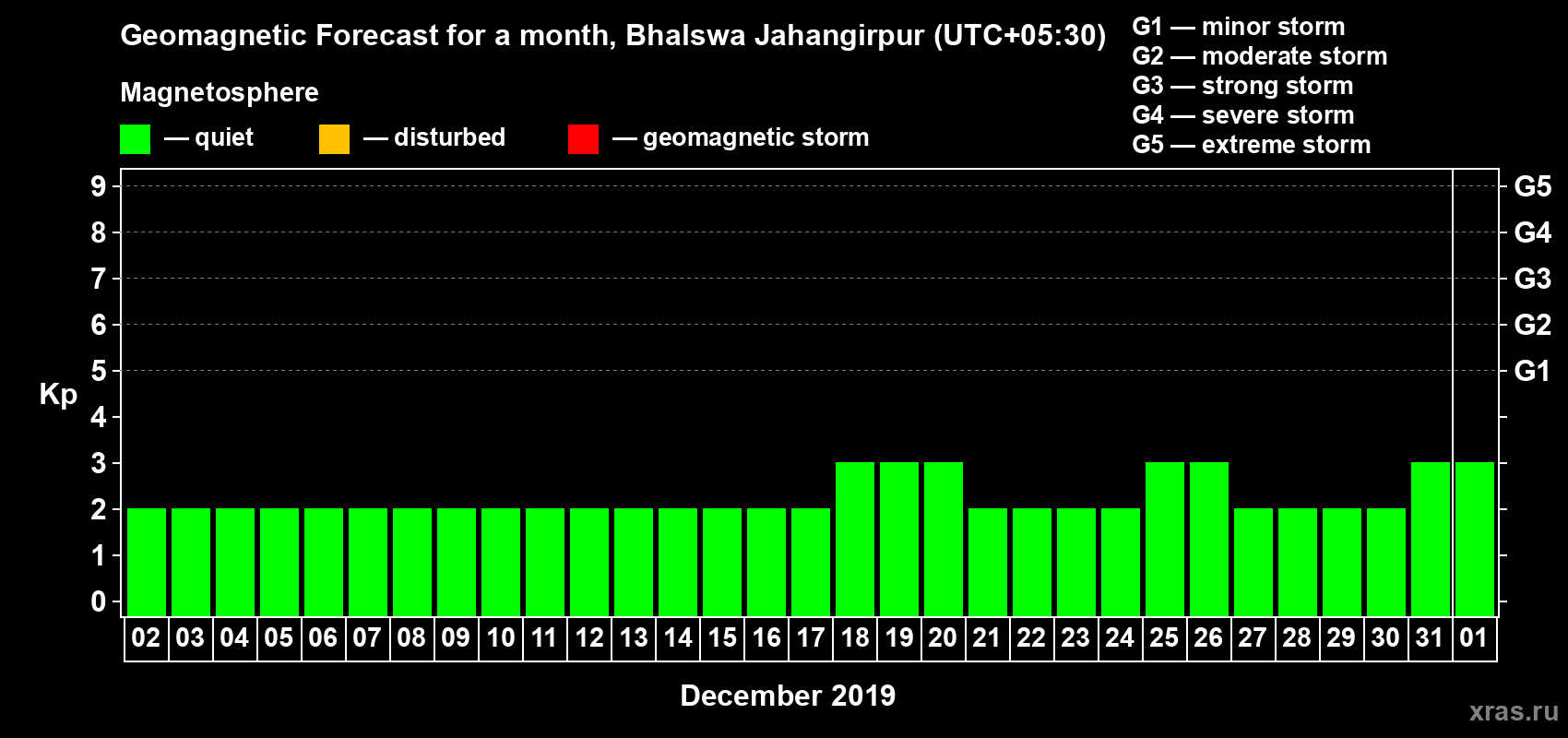Geomagnetic storm forecast in Bhalswa Jahangirpur for Dec 02, 2019