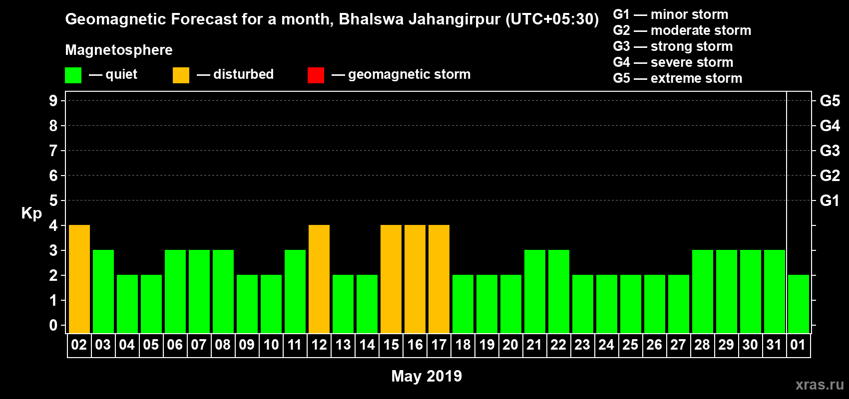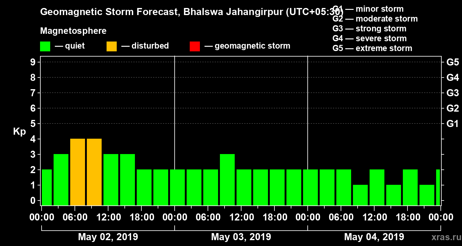 Geomagnetic storm forecast in Bhalswa Jahangirpur for May 02, 2019