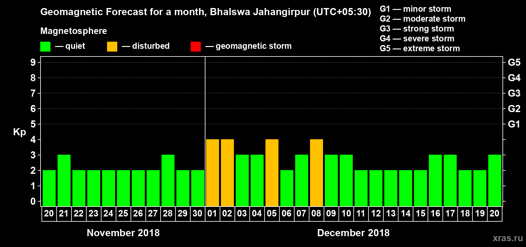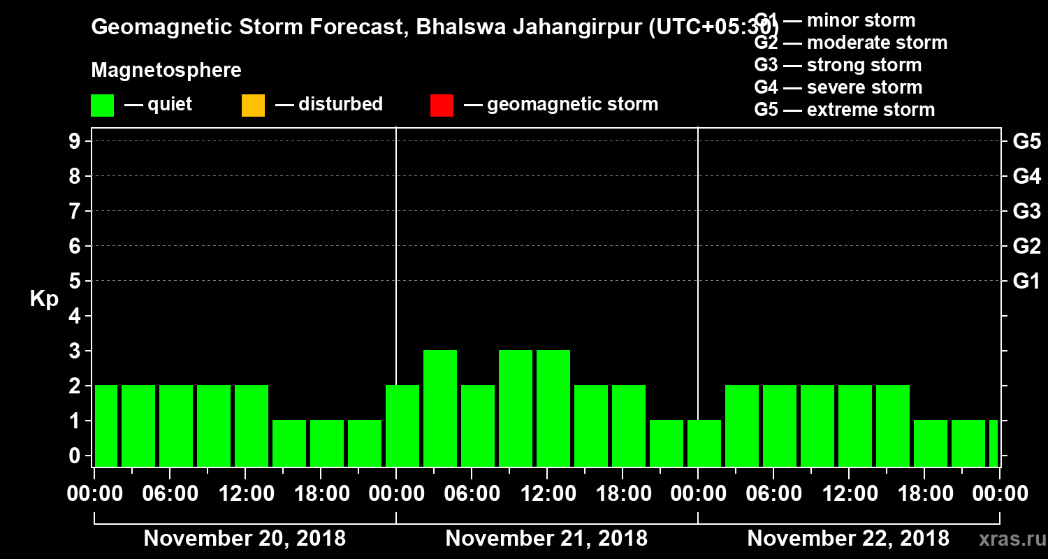 Geomagnetic storm forecast in Bhalswa Jahangirpur for Nov 20, 2018