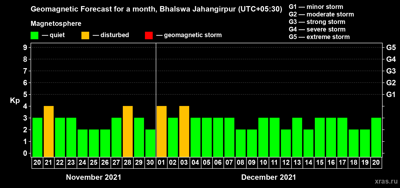 Geomagnetic storm forecast in Bhalswa Jahangirpur for Nov 20, 2021