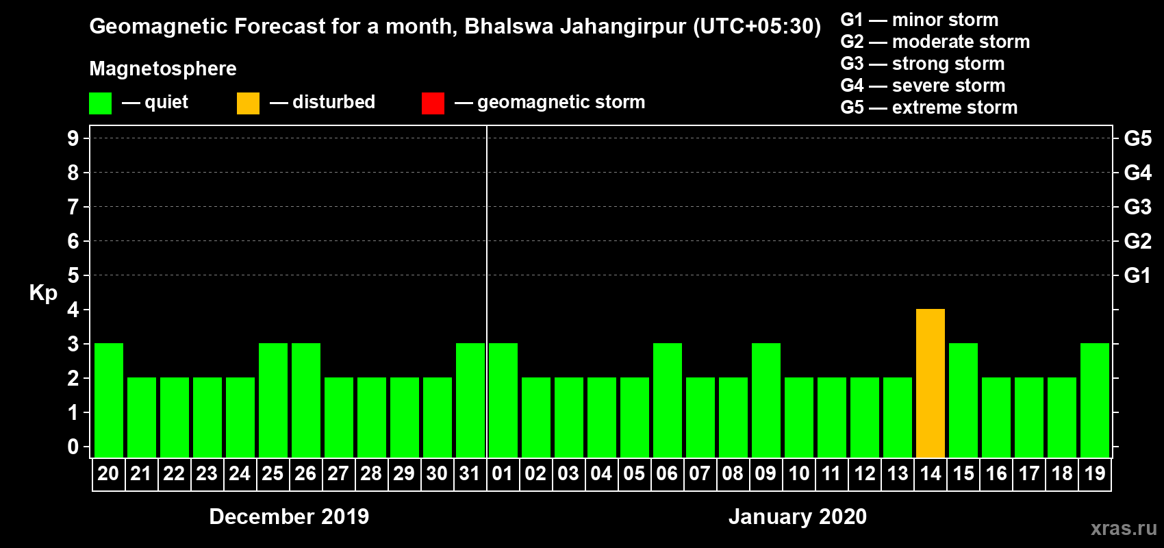 Geomagnetic storm forecast in Bhalswa Jahangirpur for Dec 20, 2019