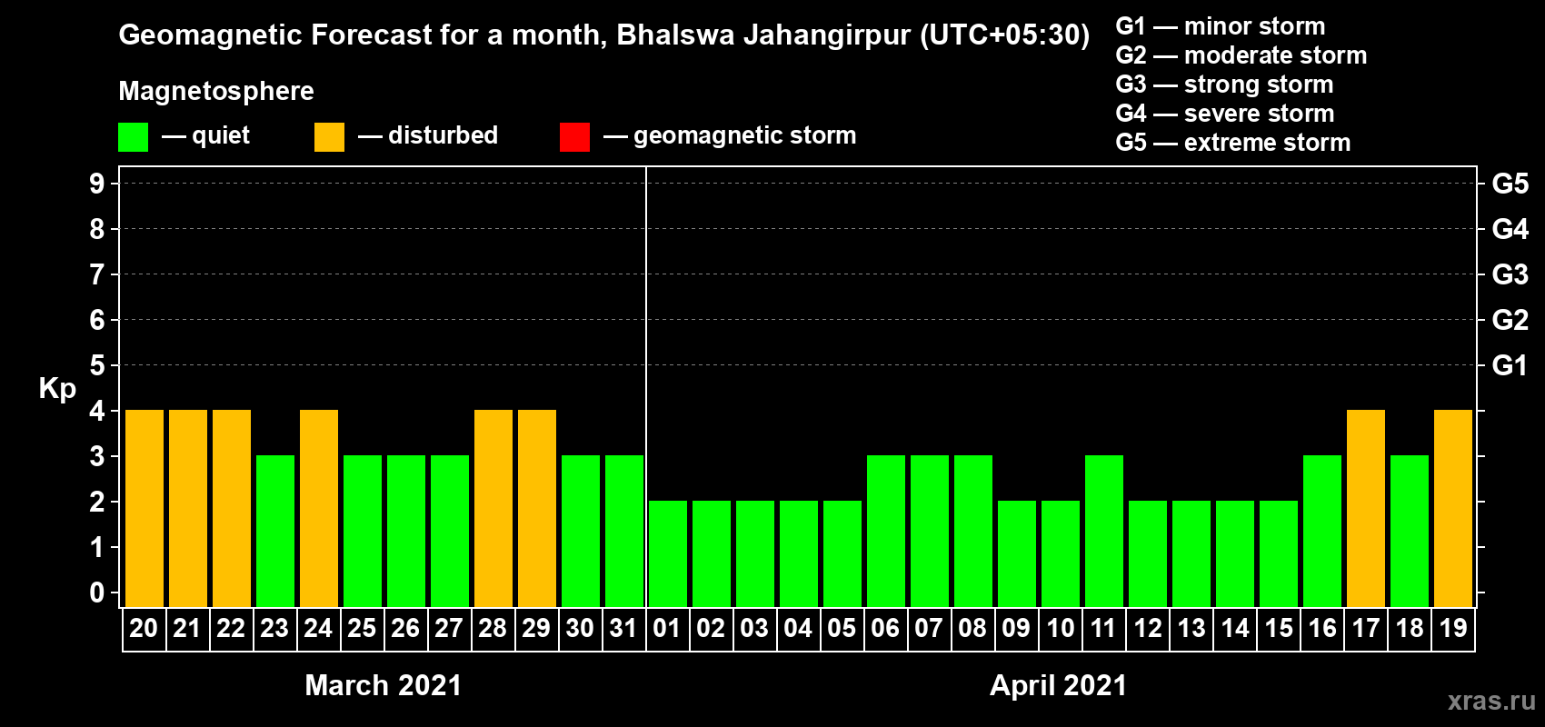 Geomagnetic activity forecast in Bhalswa Jahangirpur — Mar 20, 2021