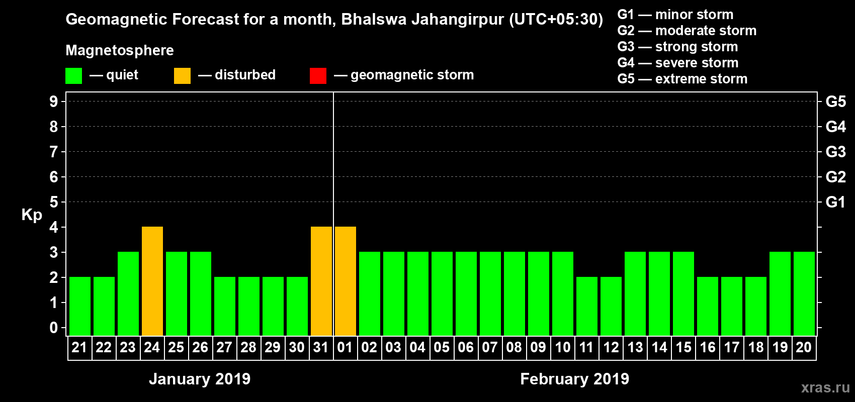 Geomagnetic storm forecast in Bhalswa Jahangirpur for Jan 21, 2019