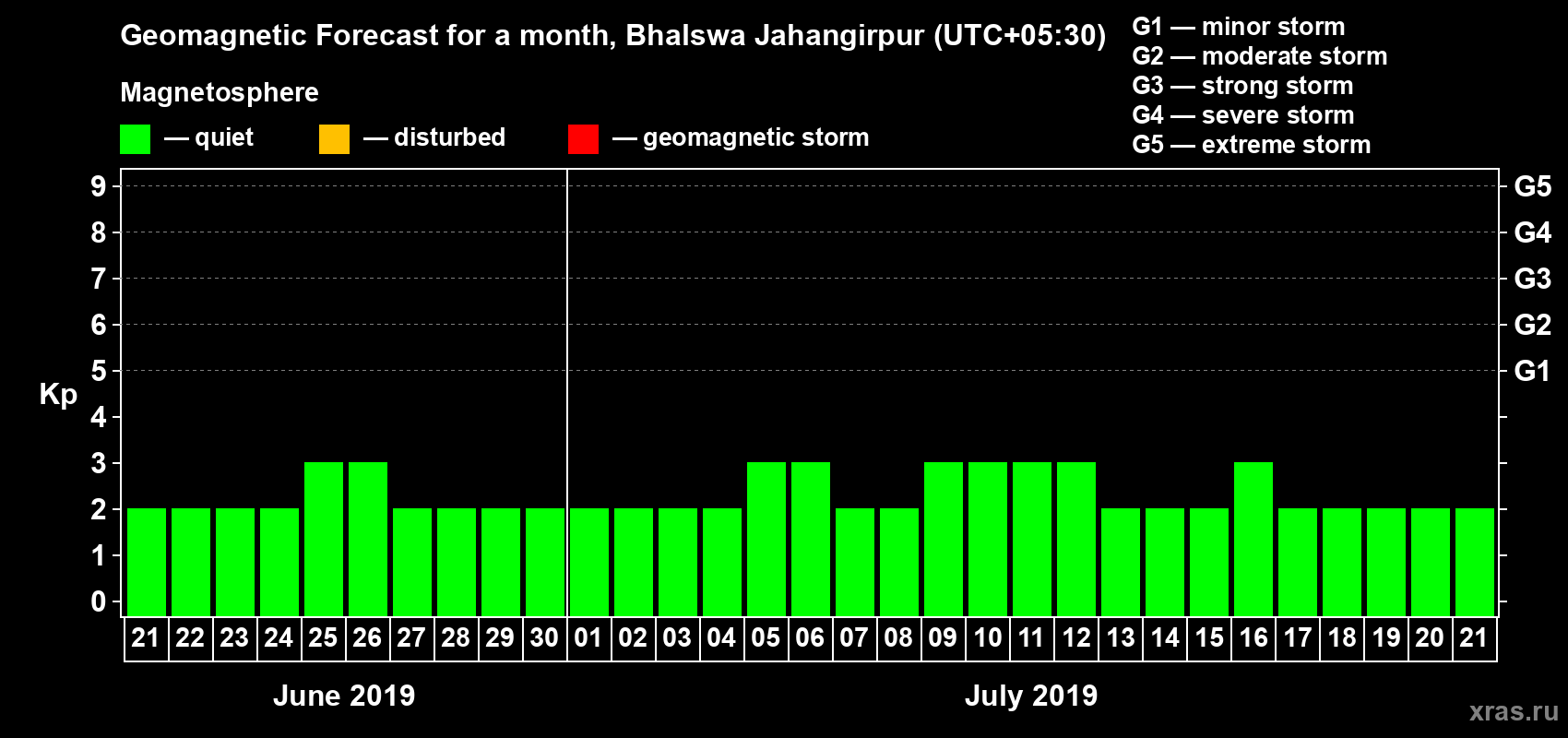 Geomagnetic storm forecast in Bhalswa Jahangirpur for Jun 21, 2019