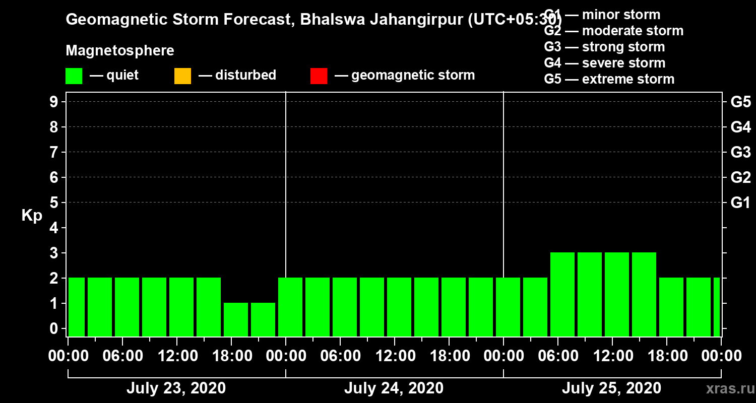 Geomagnetic storm forecast in Bhalswa Jahangirpur for Jul 23, 2020