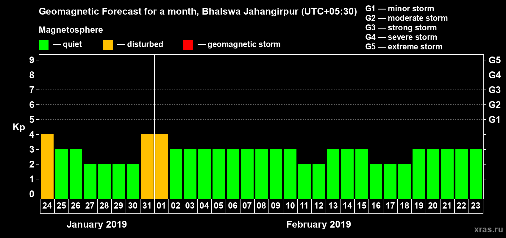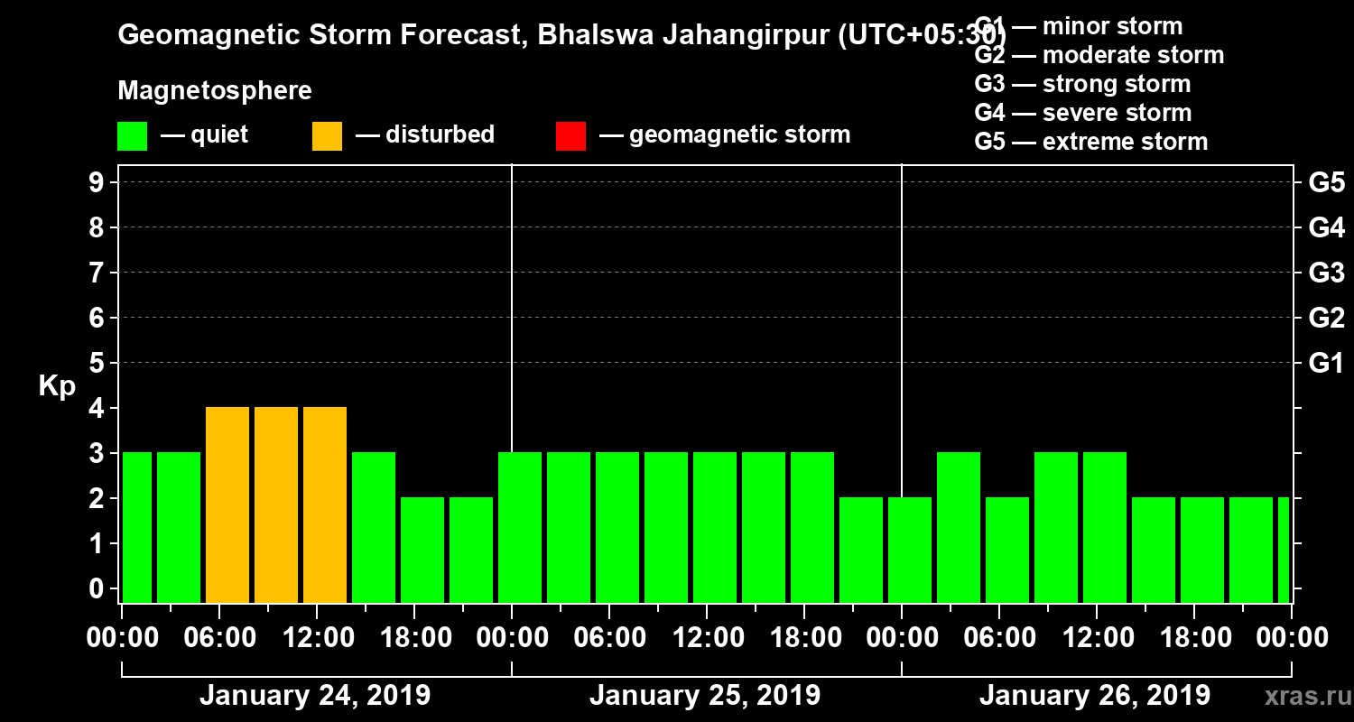 Geomagnetic storm forecast in Bhalswa Jahangirpur for Jan 24, 2019