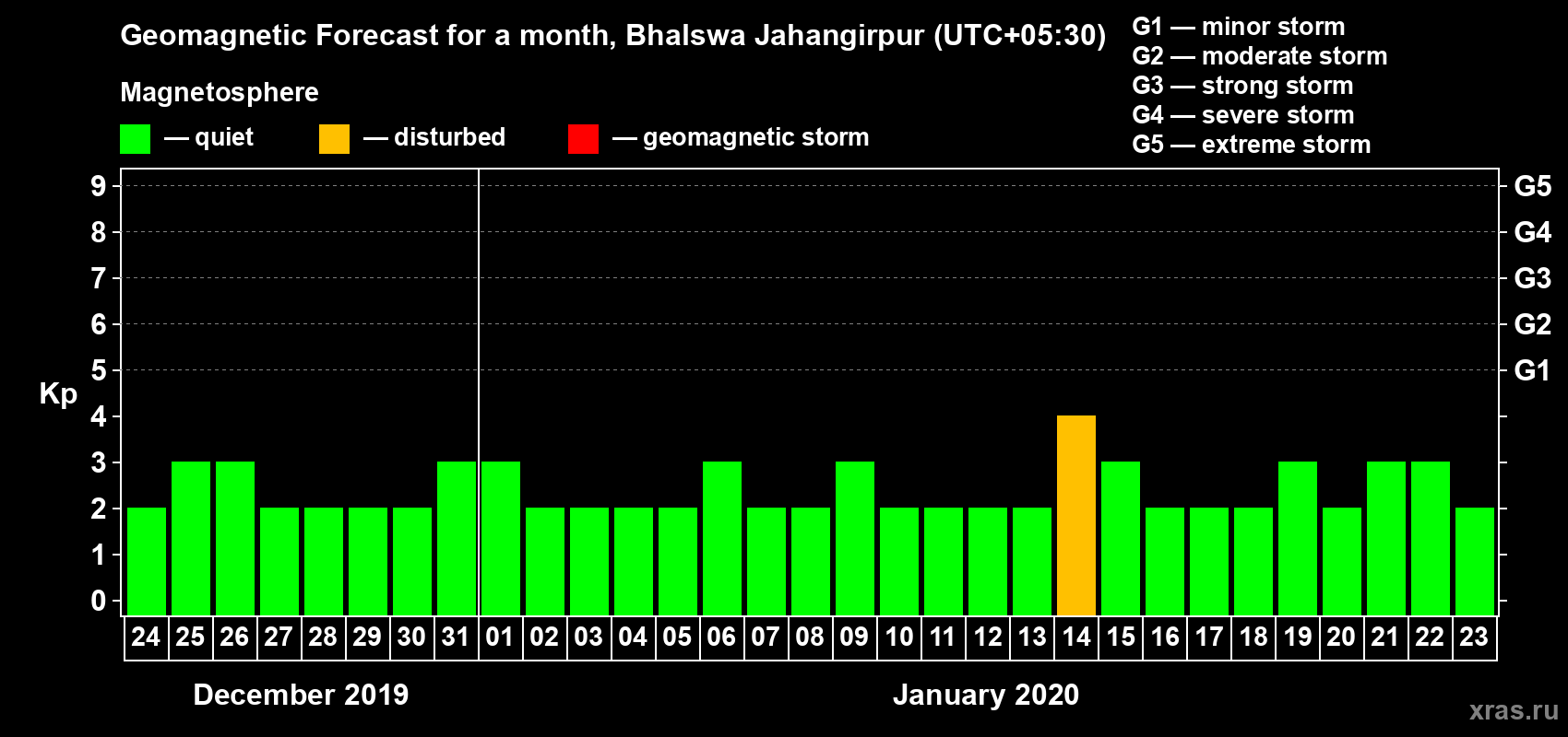 Geomagnetic storm forecast in Bhalswa Jahangirpur for Dec 24, 2019