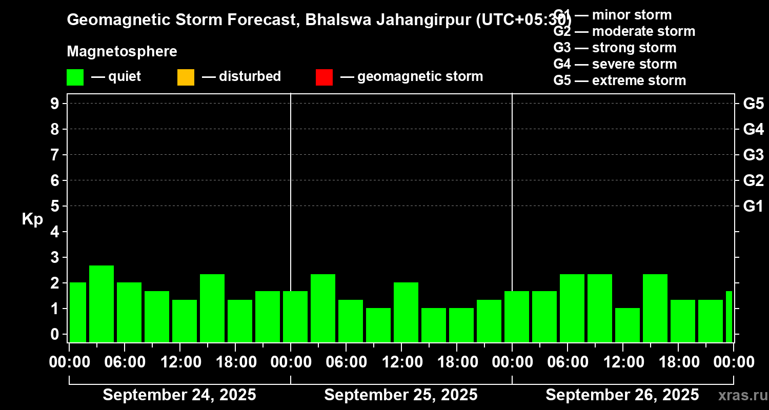 Geomagnetic storm forecast in Bhalswa Jahangirpur for Sep 24, 2025