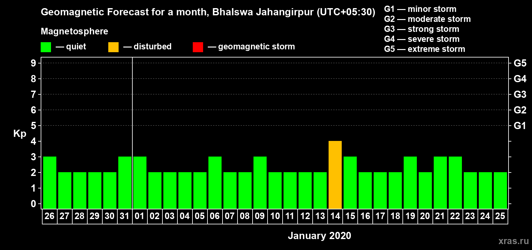 Geomagnetic storm forecast in Bhalswa Jahangirpur for Dec 26, 2019