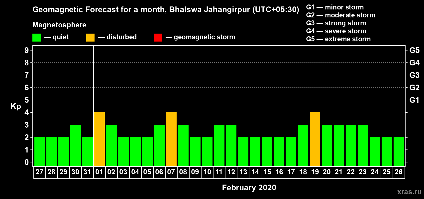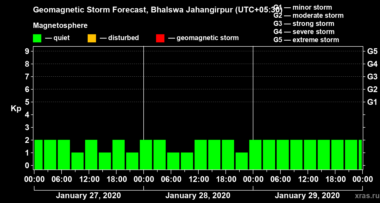 Geomagnetic storm forecast in Bhalswa Jahangirpur for Jan 27, 2020