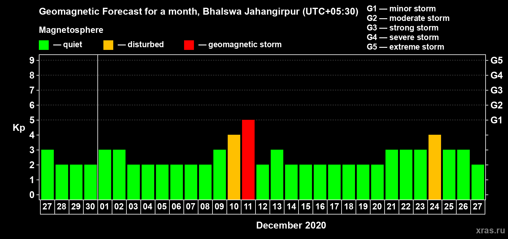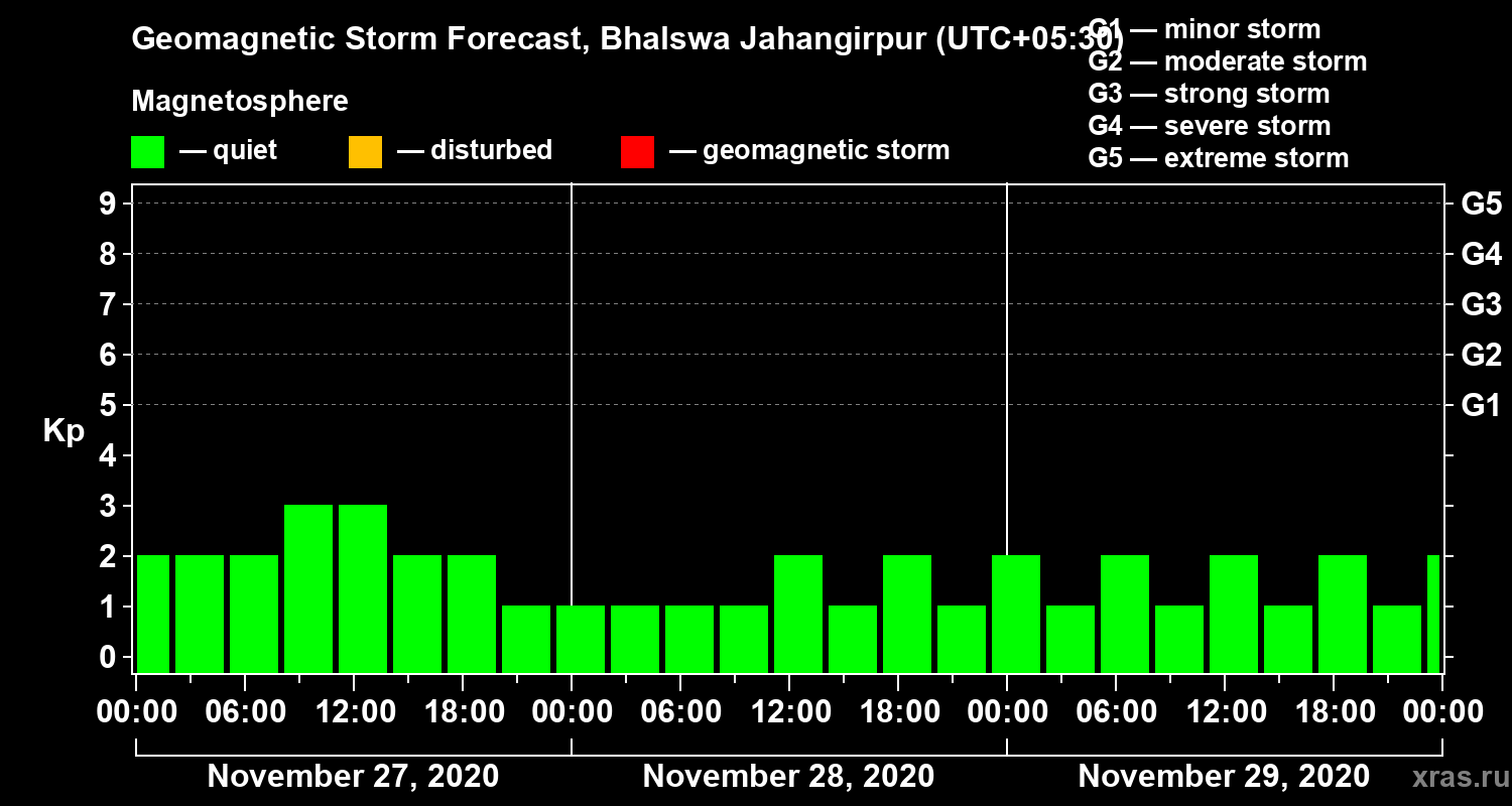 Geomagnetic activity forecast in Bhalswa Jahangirpur — Nov 27, 2020