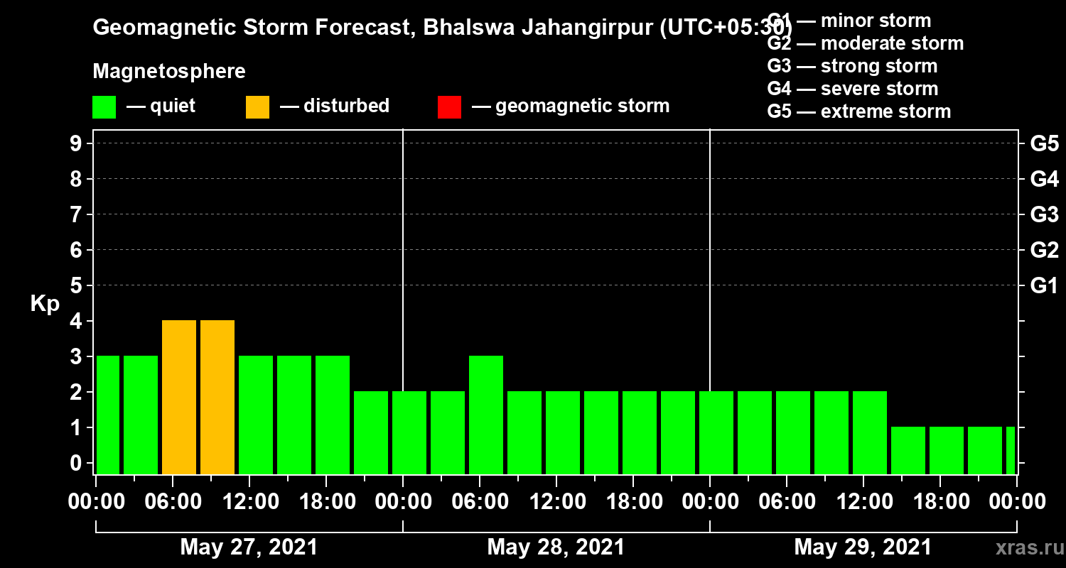 Geomagnetic activity forecast in Bhalswa Jahangirpur — May 27, 2021