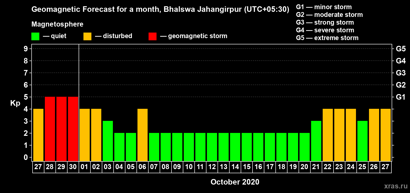 Geomagnetic activity forecast in Bhalswa Jahangirpur — Sep 27, 2020