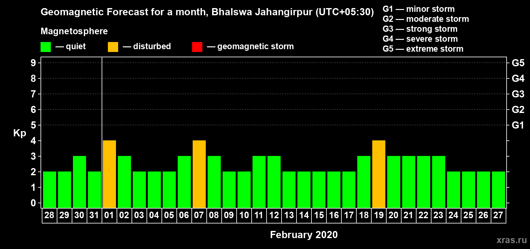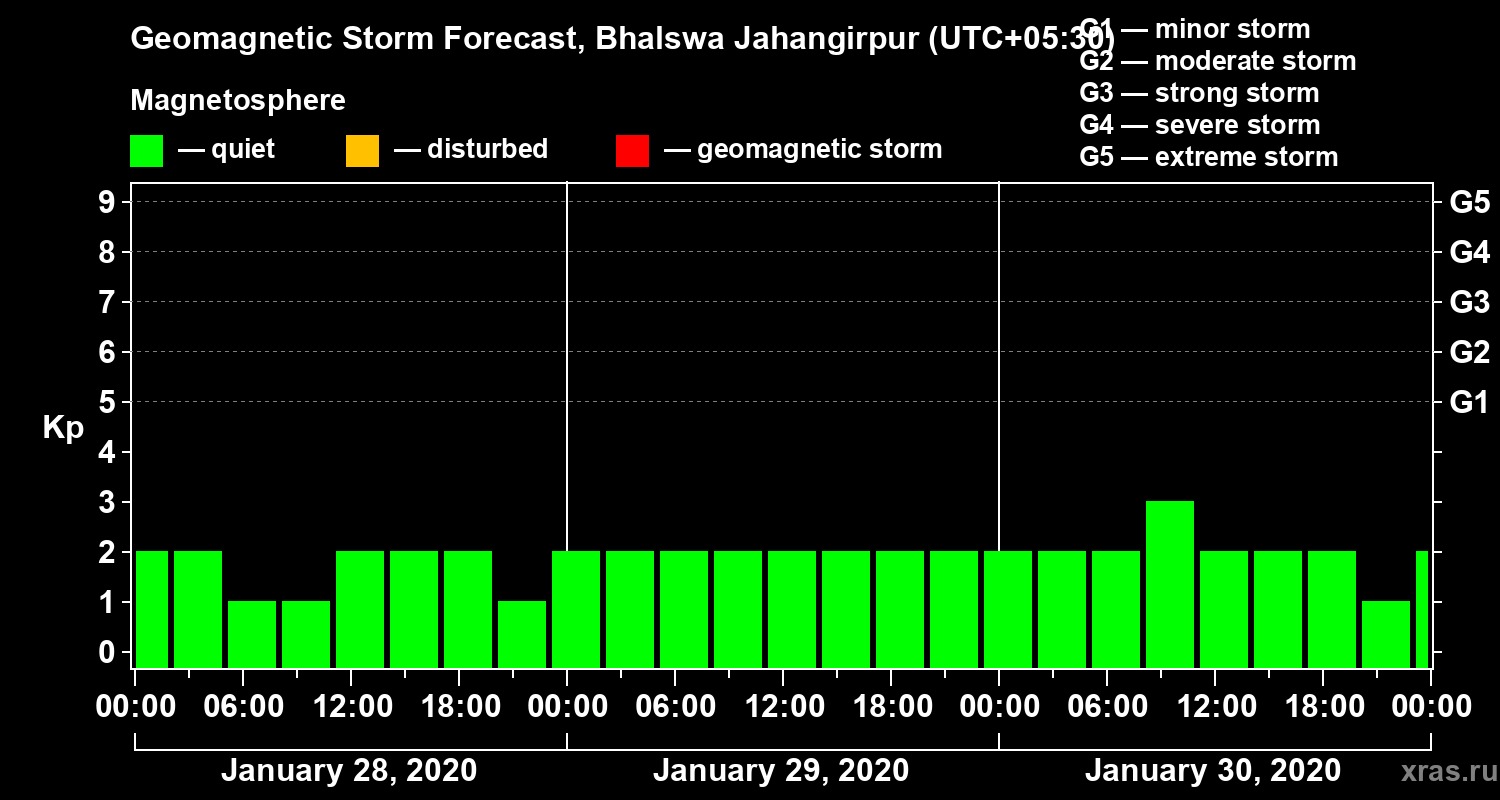 Geomagnetic storm forecast in Bhalswa Jahangirpur for Jan 28, 2020