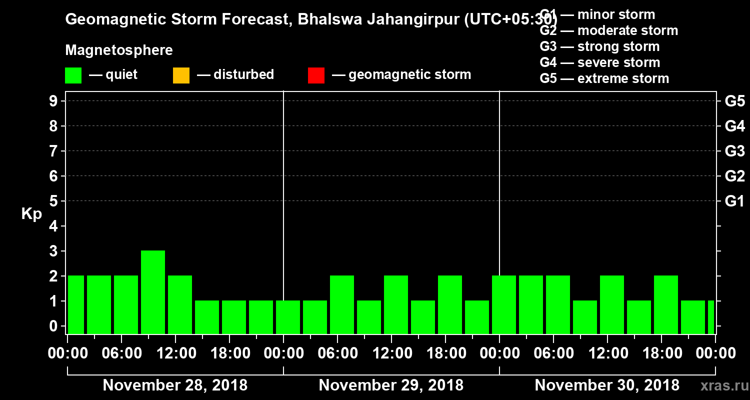 Geomagnetic storm forecast in Bhalswa Jahangirpur for Nov 28, 2018