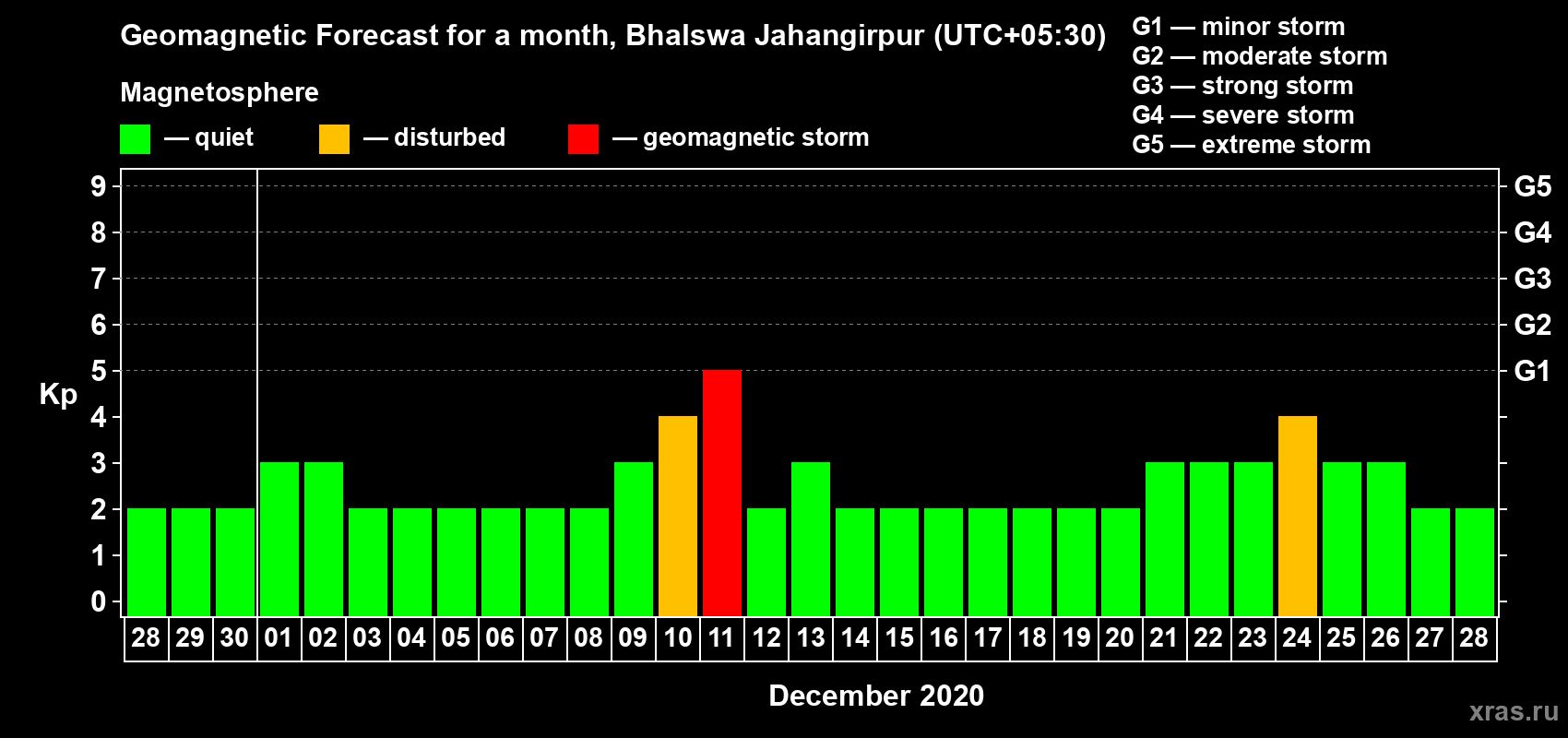 Geomagnetic activity forecast in Bhalswa Jahangirpur — Nov 28, 2020