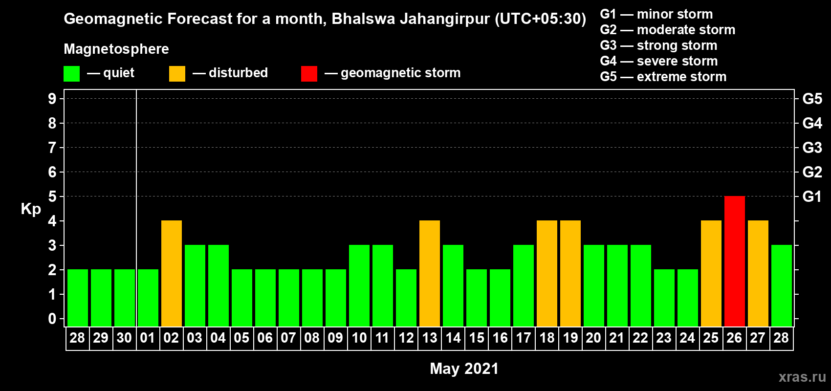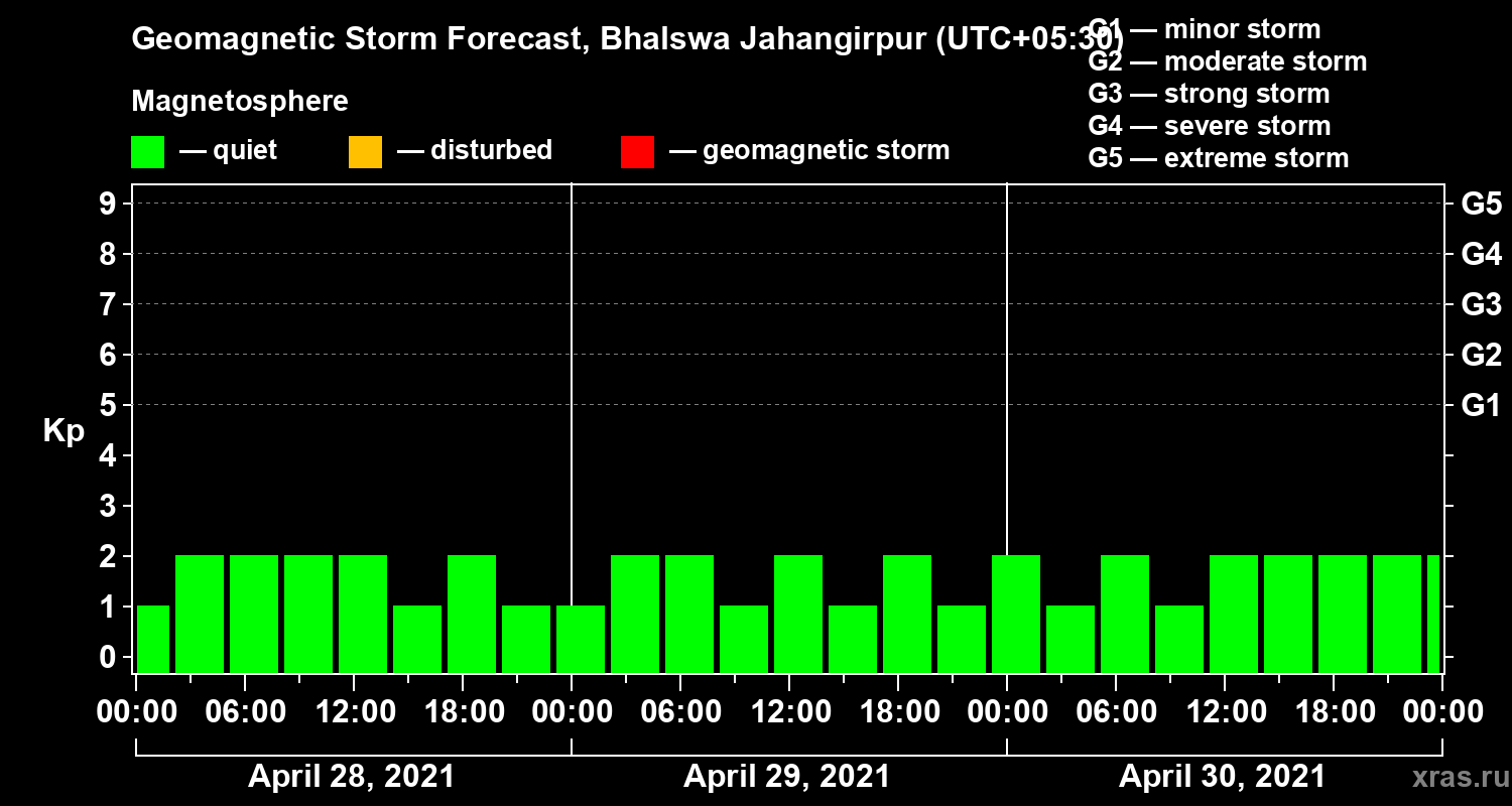 Geomagnetic storm forecast in Bhalswa Jahangirpur for Apr 28, 2021