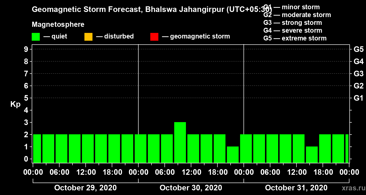 Geomagnetic activity forecast in Bhalswa Jahangirpur — Oct 29, 2020