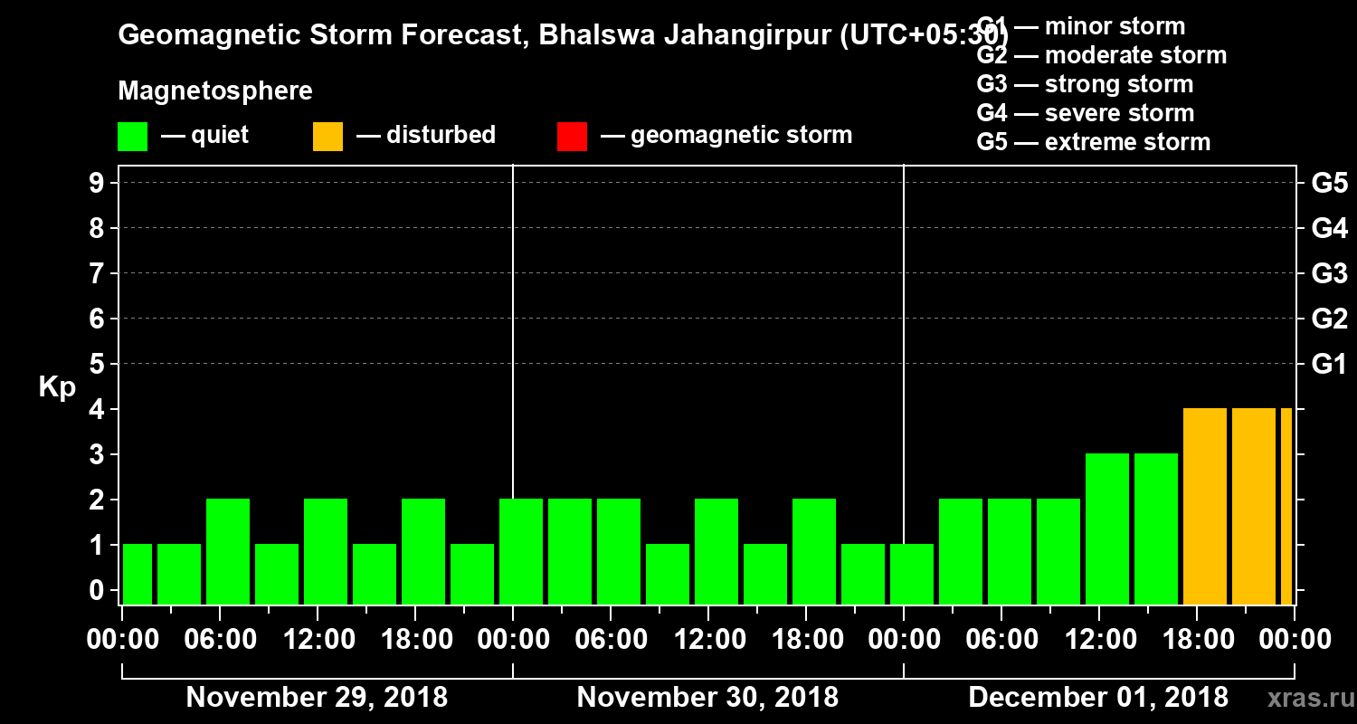 Geomagnetic storm forecast in Bhalswa Jahangirpur for Nov 29, 2018