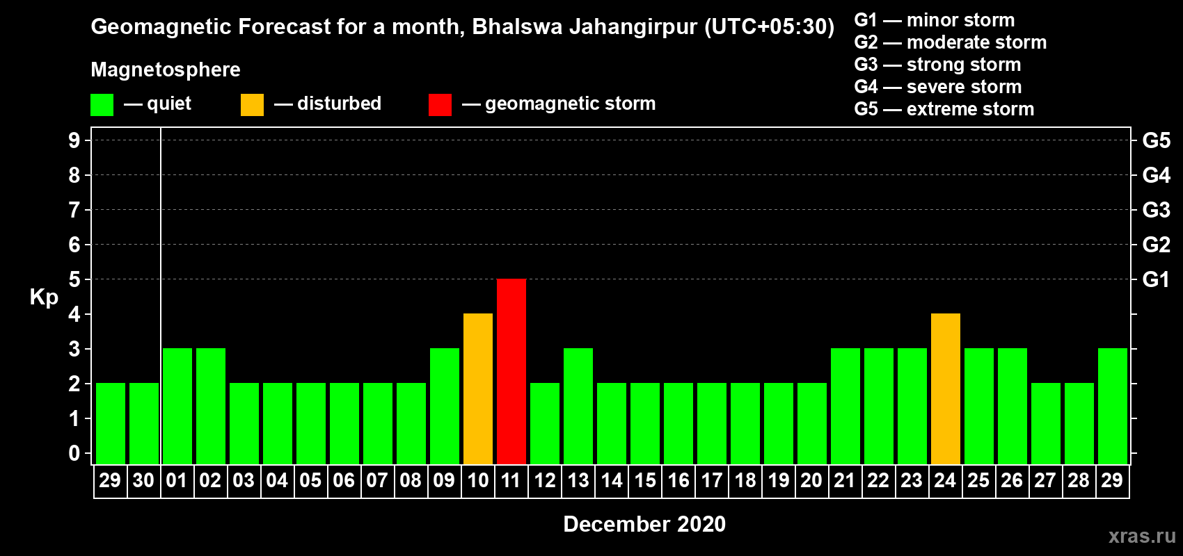 Geomagnetic activity forecast in Bhalswa Jahangirpur — Nov 29, 2020