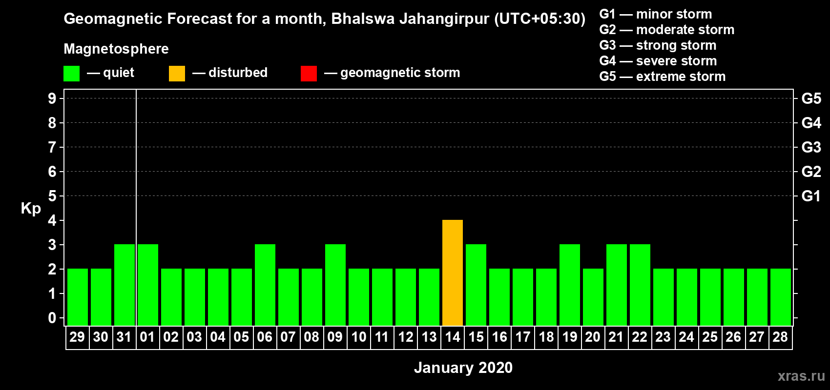 Geomagnetic storm forecast in Bhalswa Jahangirpur for Dec 29, 2019